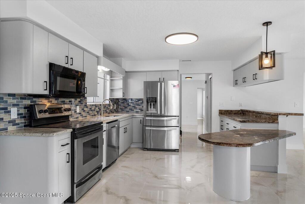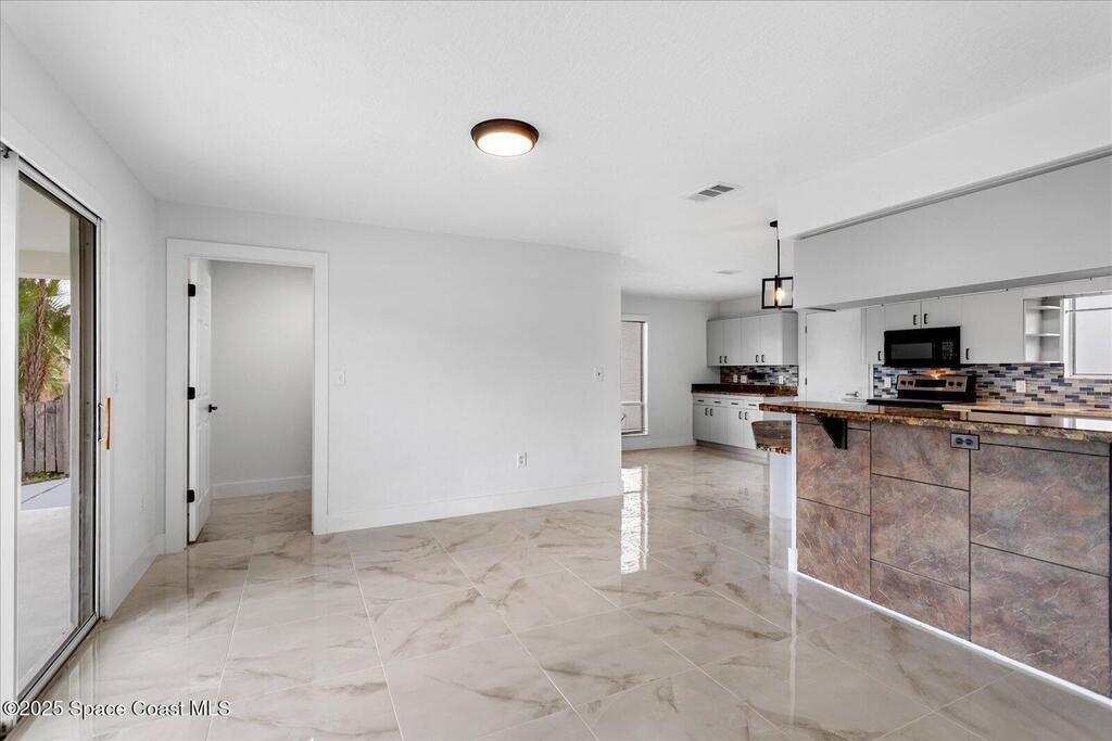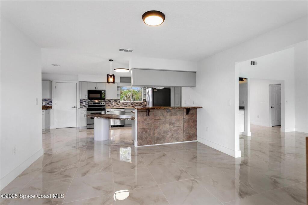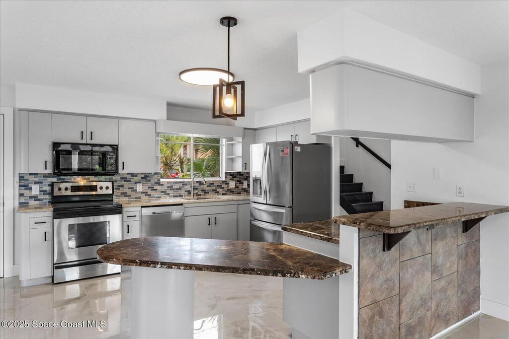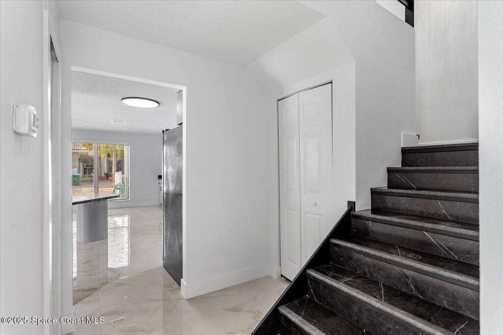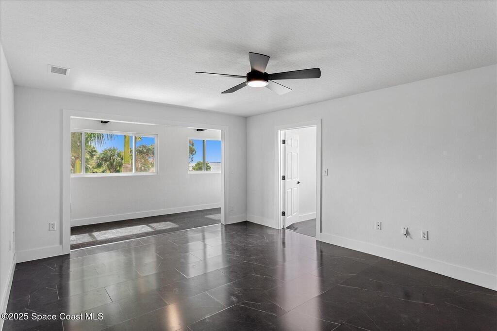 Discover this beautifully updated 3-bedroom, 2.5-bath home tucked away in a quiet Cape Canaveral cul-de-sac--just moments from the beach. View the Cruise ships coming into port from the upstairs windows. Designed for versatility, this property is perfect as a full-time residence or a short-term vacation retreat. The open-concept layout offers effortless flow from the spacious living area through the kitchen and dining space, creating the ideal setting for entertaining or relaxing. Upstairs, the primary suite provides a private retreat with a spa-inspired bath featuring a freestanding tub, oversized shower, dressing area, and sitting spaces with peaceful water views. Two additional bedrooms for guests or family.Recent upgrades include:* 2025 New roof and New interior, exterior paint, remodeled interior
