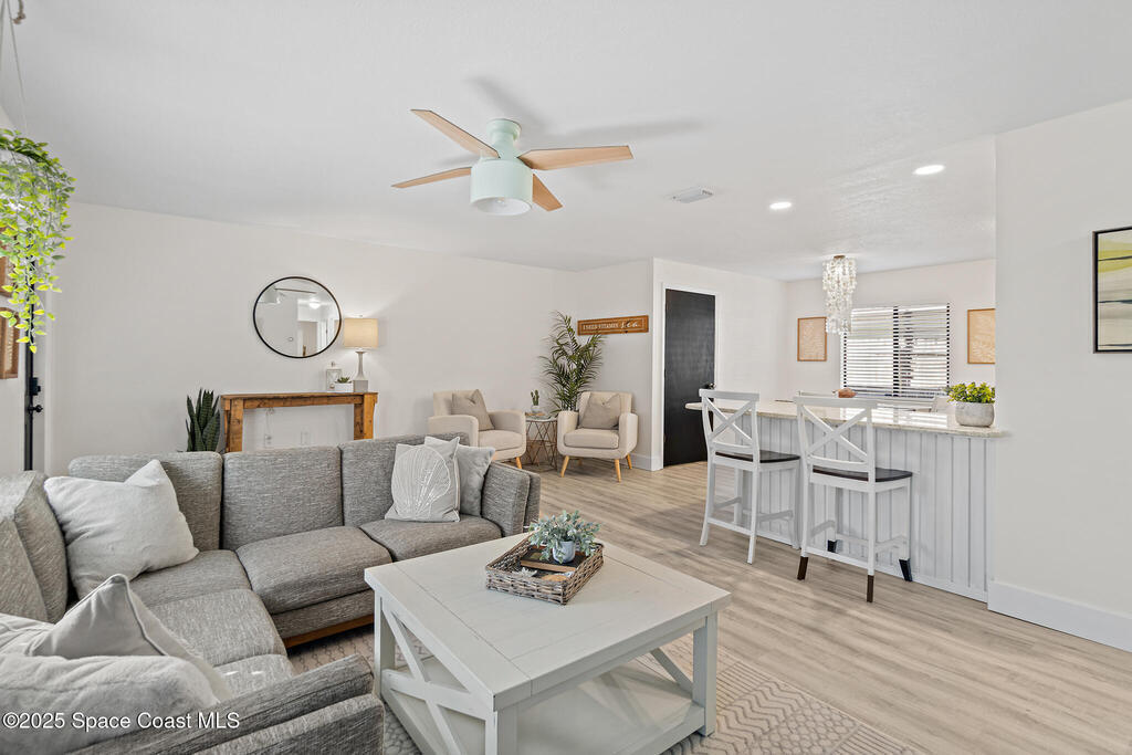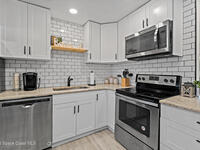 This completely renovated home sits just blocks from the beach in prime Cape Canaveral.Catch rocket launches from your private backyard, then head inside to discover a stunning full renovation. Chef-ready kitchen w/ white shaker cabinets, granite counters, tile backsplash, and stainless appliances. Luxury vinyl w/ underlayment flows throughout the spacious, light-filled rooms. Indoor laundry room keeps things convenient, while your landscaped yard and storage shed add functionality.NO HOA means you control your destiny--run it as a short-term rental powerhouse or move right in as your beachy primary residence. Two assigned parking spots seal the deal.Location: beach 8 minutes away, Port Canaveral close, SpaceX and Space Force practically neighbors, Orlando/airport 45 minutes out. Shopping and schools nearby.Whether you're collecting rental income or collecting seashells. This is Cape Canaveral living at its finest!