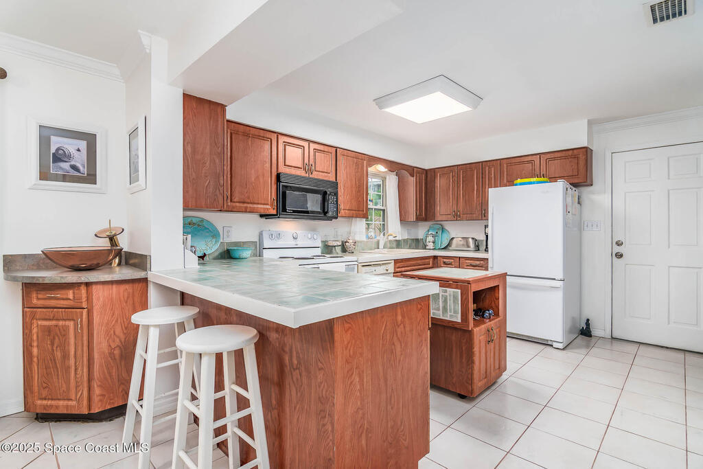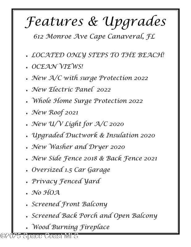 Enjoy Ocean Views and coastal living in this very unique 3-bedroom, 2.5-bath townhome, located just steps from the sandy shoreline on the desirable east side of Ridgewood Avenue. Meticulously maintained and offering a perfect blend of comfort, convenience, and coastal charm. Recent updates include a new roof in 2021, new A/C and electrical panel in 2022, upgraded insulation and ductwork in 2020 providing peace of mind for years to come. Featuring a spacious layout with an open-concept living and dining area, perfect for entertaining or relaxing after a day at the beach. The 1.5-car garage provides ample space for parking and storage. Whether you're looking for a full-time residence, vacation home, or investment property, this townhome has a perfect location, where cruise ships sail and rockets soar, offering coastal serenity and space coast excitement. Homes in this location rarely hit the market, especially this close to the beach. YOU can experience this unique lifestyle!