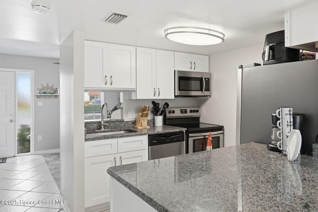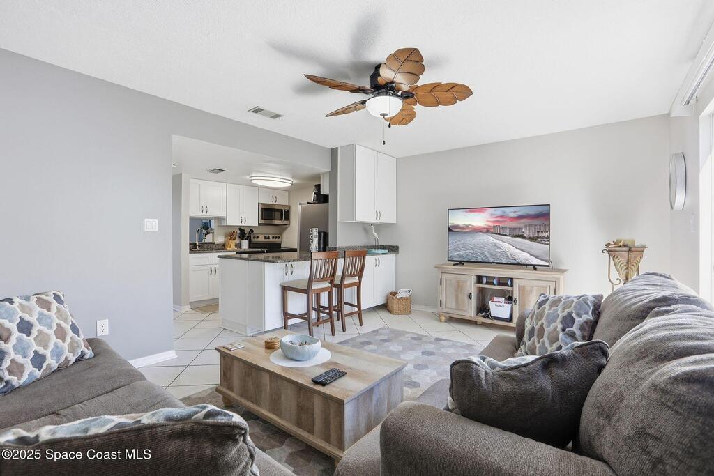 Bright & updated two bedroom, two and a half bath condo just steps from the ocean in beautiful Cape Canaveral Florida. Enjoy a modern kitchen, refreshed bathrooms, and a spacious great room with glass sliders opening to a charming paver patio. This resort-style community offers 3 pools, private beach access, tennis courts, a clubhouse, ocean observation deck and an exercise room-ideal for coastal living at it's finest!