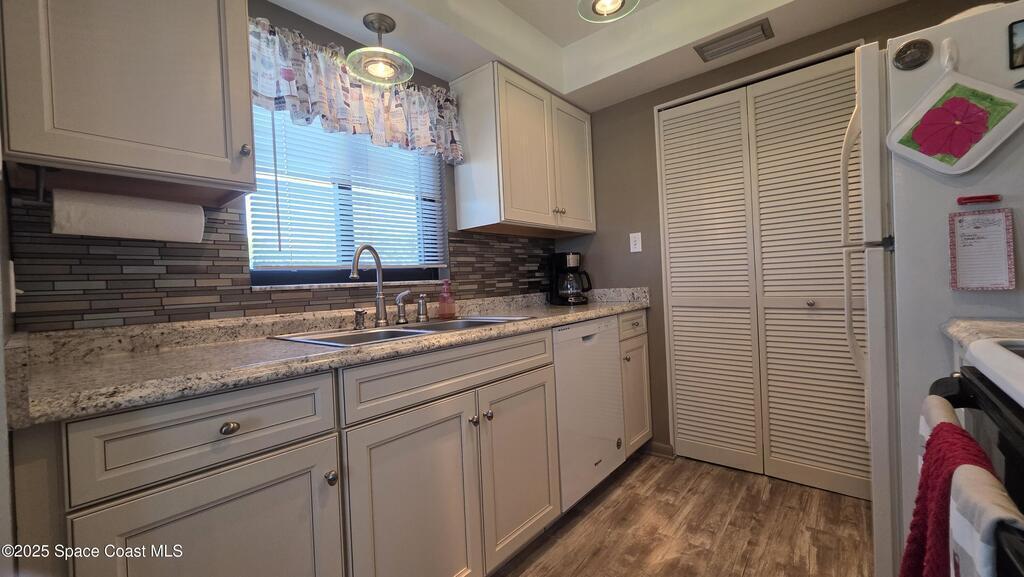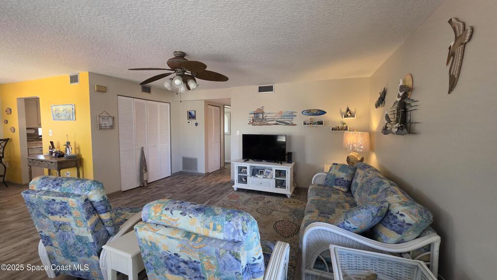 SELLERS OFFERING $2k TOWARDS CLOSING COSTS!!! Light, bright & breezy!! Come see this beautiful 2 bedroom, 2 bath end unit in Canaveral Bay. The owners took pride in their home and it shows. Home was renovated just a few short years ago. New windows, new flooring, fresh paint, ceiling popcorn removed and skim coated, new cabinets in the kitchen, custom made cabinets in guest bath, new water heater 2025, newer hardly used dishwasher. Mostly all furniture included except dining room set, desk and foot board console in main bedroom. Enjoy sunrise and sunset or watch the rockets go up and the boosters come down on your wraparound patio that overlooks the pool and tennis courts. Heated pool has a hot tub, sauna, rest rooms and is gated. 3rd floor location & extra windows allow for the most amazing sea breezes to flow through the home. Community also has a car wash area and kayak storage!! Don't let this one slip by!!!