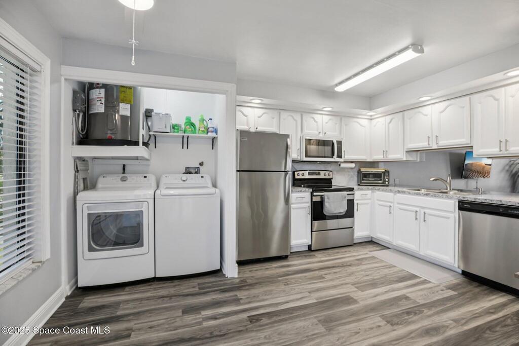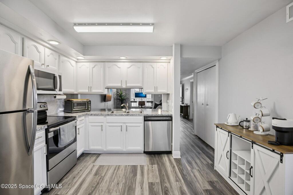 Use our preferred lender, Rocket Mortgage, and receive up to $6, 000 toward your closing cost!!! This beautiful remodeled 2 bedroom, 1 bath condo on the 3rd floor comes partially furnished and offers modern living in a prime location. Enjoy updated LVP flooring throughout, a fully renovated bathroom, fresh paint, newer washer and dryer, and an upgraded kitchen with contemporary finishes. The community pool is within easy reach of your unit, with tennis courts nearby and private river access perfect for paddleboards, kayaks, and canoes - complete with convenient storage racks. Move-in-ready and loaded with lifestyle amenities, this condo is the perfect blend of comfort, style and coastal living!!!