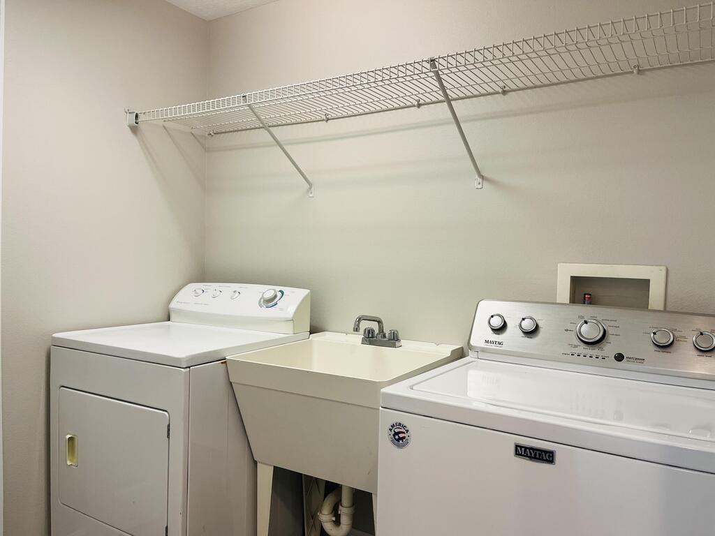 Sea Spray in Cape Canaveral! Perfect location! Spacious three bedroom two & half bath townhome! First floor - living room, dining room, kitchen, half bath, laundry room with full size washer & dryer and one car garage. Second floor - Spacious primary bedroom w/ full bathroom, & walk in closet, second bedroom, third bedroom and second full bath upstairs. Patio to soak up the Florida sunshine off living room. Tile floors throughout first floor living space. Carpet on stairs. Wood laminate floors in bedrooms. Owner will consider a small dog with pet deposit. One garage with one parking spot outside garage. Property is currently listed for sale but owner will take off the market if rented. Great Cape Canaveral location! Walk or bike to the Port, Jetty Park or the beach!