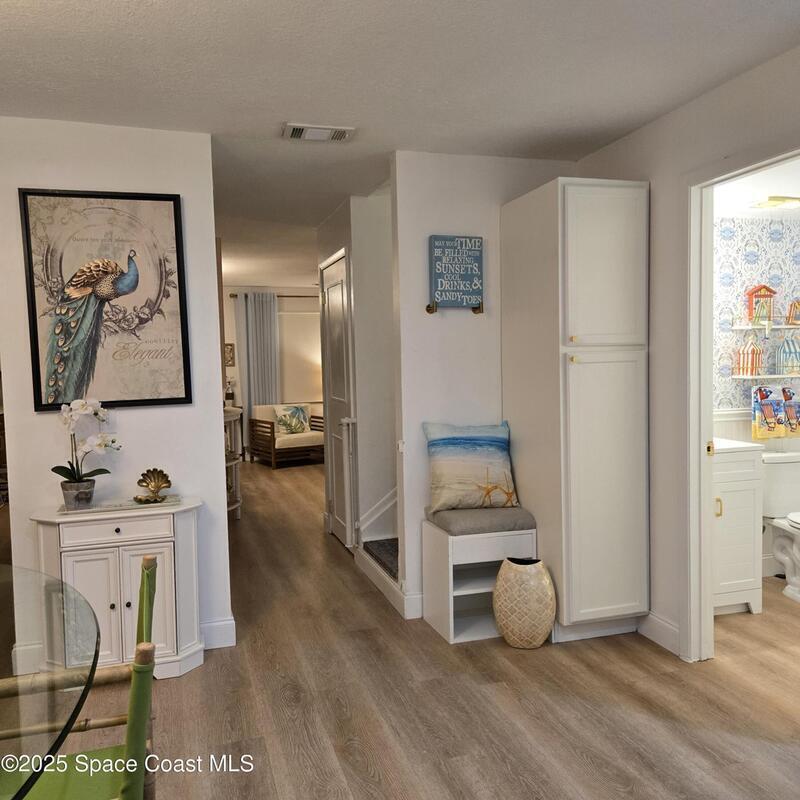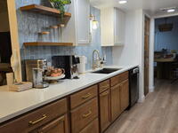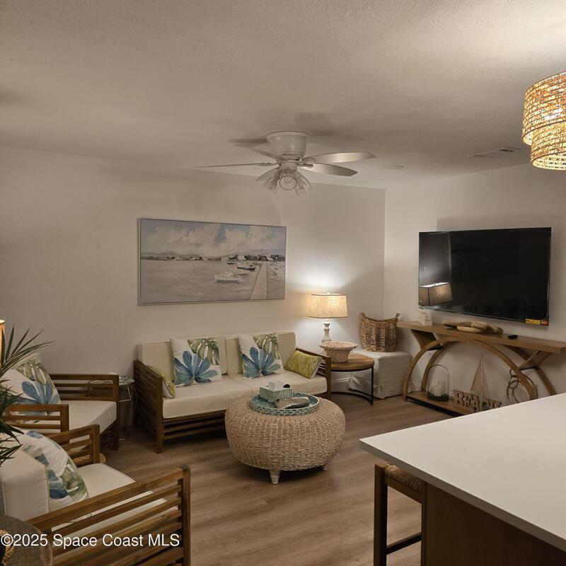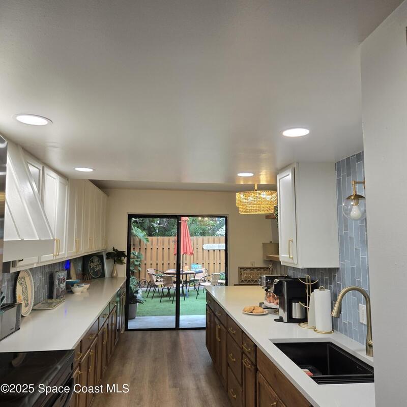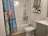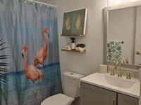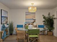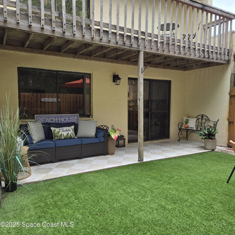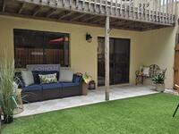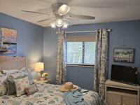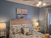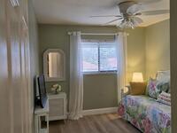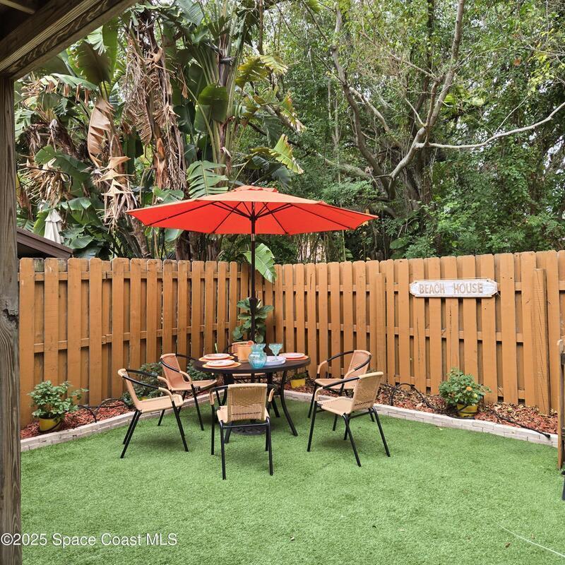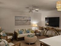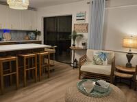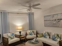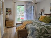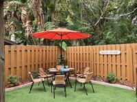 Nestled in the trees, this hideaway is the perfect place to relax and unwind on your next vacation. Just about a seven minute walk along a shady nature trail to Peacock Beach on the Atlantic Ocean, this 3 bedroom, 2.5 bath garage townhome features a fenced back yard surrounded by lush tropical landscaping. The entry foyer welcomes you into a spacious Dining room with seating for six and leads you into a bright and sunny Living room with access leading to the private back yard with both casual seating and outdoor dining. Adjoining the Living room is a newly renovated and expanded gourmet kitchen featuring granite counters, stainless appliances, a built-in wine cooler and breakfast bar. Fully equipped for dining and entertaining including a blender, coffee maker/espresso, panini press and gas grill in the back yard. The first floor also offers a convenient powder room and direct access to the garage. The upper level offers a primary suite with a King sized bed and entry