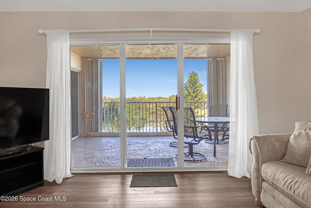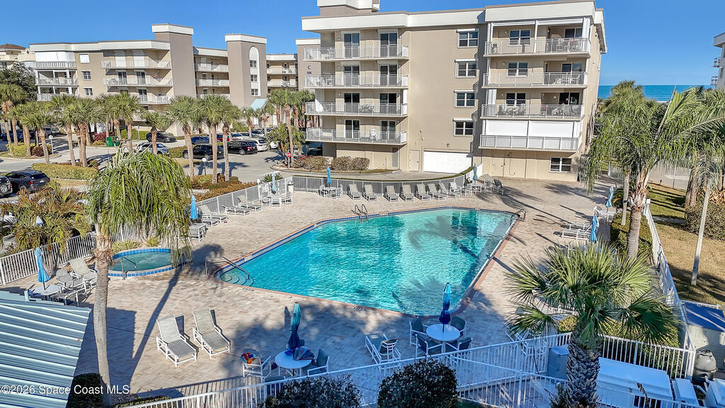 Enjoy resort-style living in this 2-bedroom, 2-bath condo in desirable Cape Canaveral with stunning views of cruise ships and rocket launches. Each bedroom features a private en-suite bathroom and its own walk-in closet, offering comfort and privacy for owners and guests alike. The open-concept living space includes a kitchen with granite countertops, no carpet throughout, and seamless flow to a private balcony overlooking the lake and port. Community amenities include pickleball and tennis courts, fitness center, sauna, community center, and direct beach access. Whether you're seeking a full-time residence or a seasonal retreat, this well-appointed community offers the perfect coastal lifestyle.