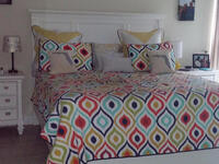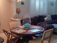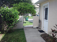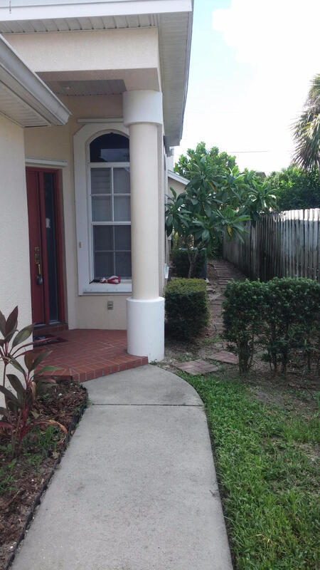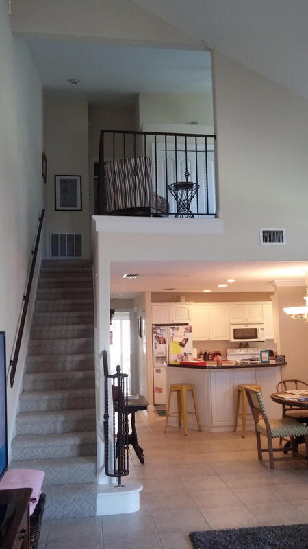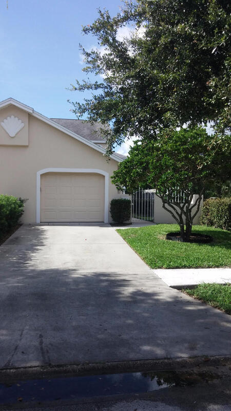 A block from the beach and I am GORGEOUS!!! Very large two story town home with 2 bedrooms and large bonus loft over looking general living area. This home is in GREAT and clean shape with one car garage, screened in porch, and fenced in yard with decking. Tile throughout with indoor laundry that's downstairs across kitchen including washer and dryer. Breakfast bar overlooking formal dining area. Flexible floor plan with 1 bedroom downstairs with full bath as well, and leads to screened in porch overlooking lush yard. Lawn Care is included. Cute iron gate presents bonus courtyard leading up to pillared entry area.