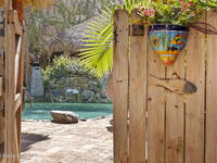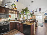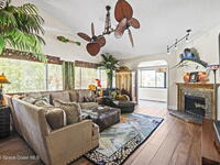 Tropical paradise just steps from the beach in Cape Canaveral! This one-of-a-kind 3 bedroom, 2 baths + office townhome is the only property on the east side of Ridgewood Ave to span an entire city block (BUILDABLE LOT INCLUDED), offering rare privacy and endless possibilities. Arrive through lush, manicured tropical landscaping that feels like your own island retreat. The backyard is an entertainer's dream with a stunning blue lagoon pool, travertine pavers, and a one-of-a-kind tiki pavilion with a fully built-out bar. A rare vacant lot provides room for a guest house, future investment property, or space for all your toys. Inside feels like a Hawaiian escape with wood-look tile floors and custom touches throughout. The open floor plan flows effortlessly as the kitchen overlooks the spacious family room with vaulted ceilings. The primary suite overlooks the tropical backyard and features a spa-like bath with steam shower and soaking tub.
