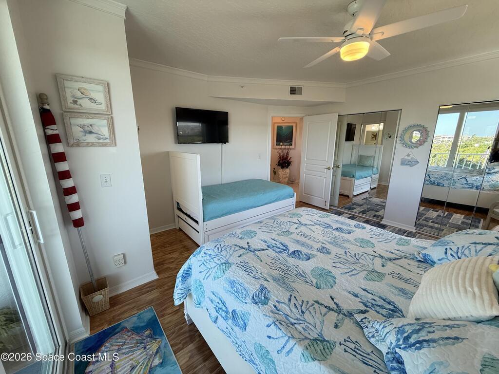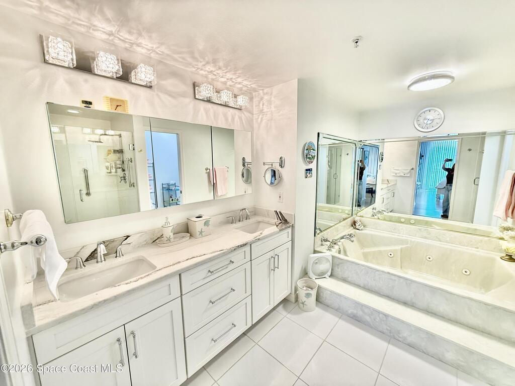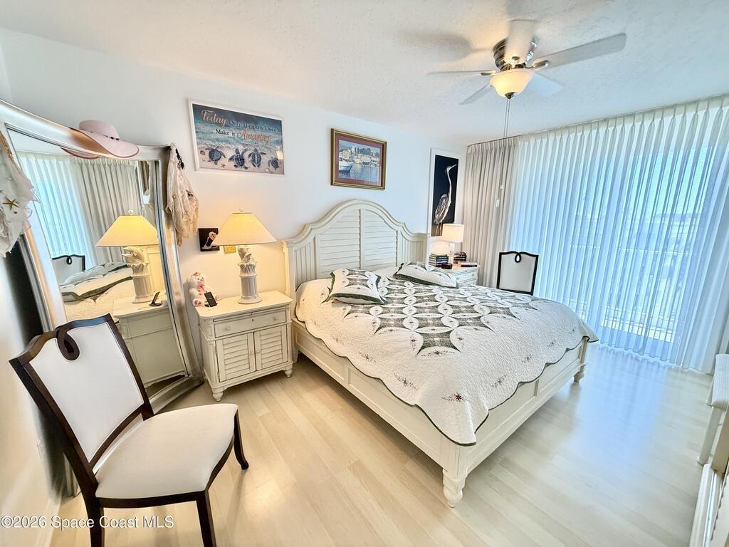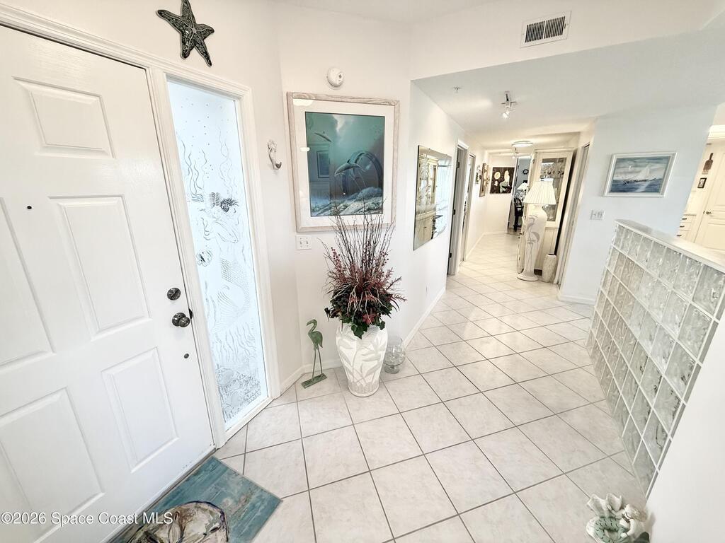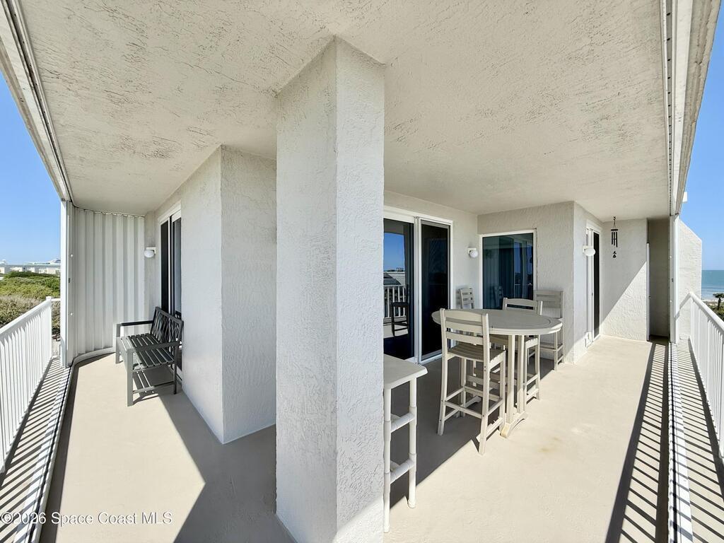 GORGEOUS UPGRADED 3 BEDROOMS/ 2.5 BATHROOMS CORNER PENTHOUSE!! BEAUTIFUL Ocean & Port view from private balcony. NEW Quartz countertops in kitchen, bathrooms, laundry room; New floors in guest bedrooms, New impact hurricane windows, New A/C 2025, New hurricane shutters & electric shutters in guest bedrooms, New medicine cabinets, New light fixtures & ceiling fans, New water valve in laundry room, and private 2 car garage under building w/ new flooring. XLNT location near all thoroughfares w/ easy access to Port Canaveral, KSC, Patrick AFB, restaurants, shopping centers, 520, 528, just about an hour to Orlando & attractions. A MUST SEE!!