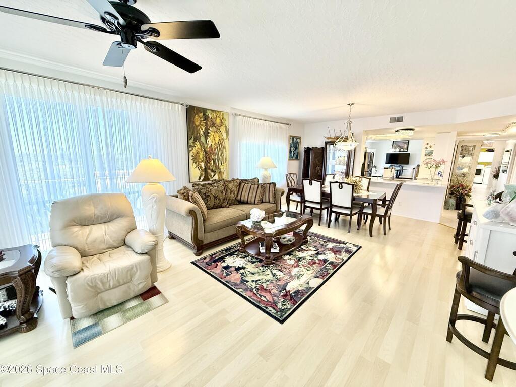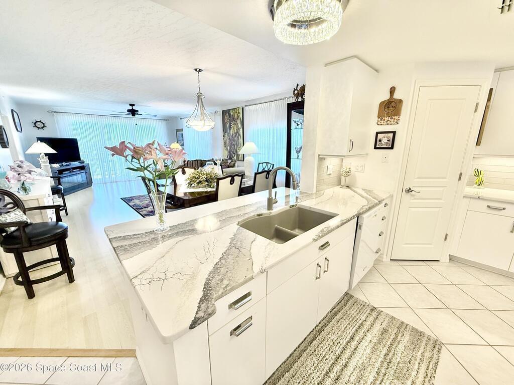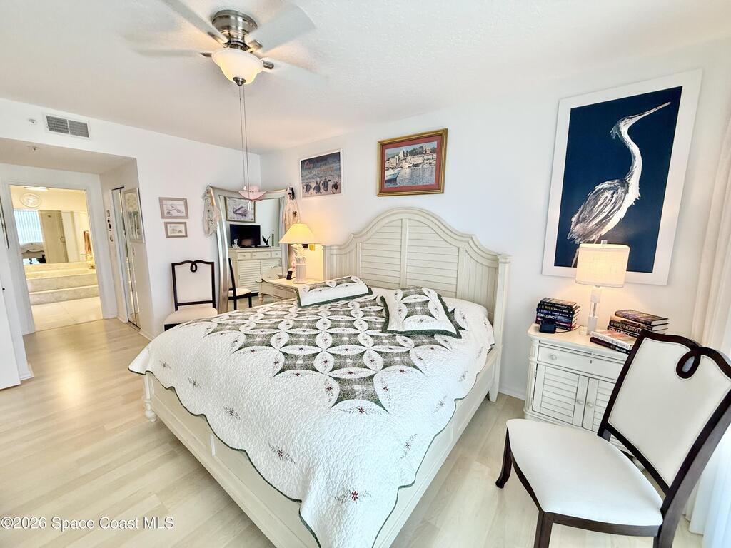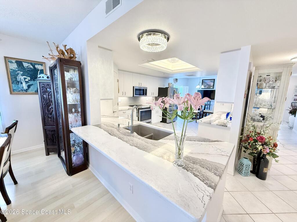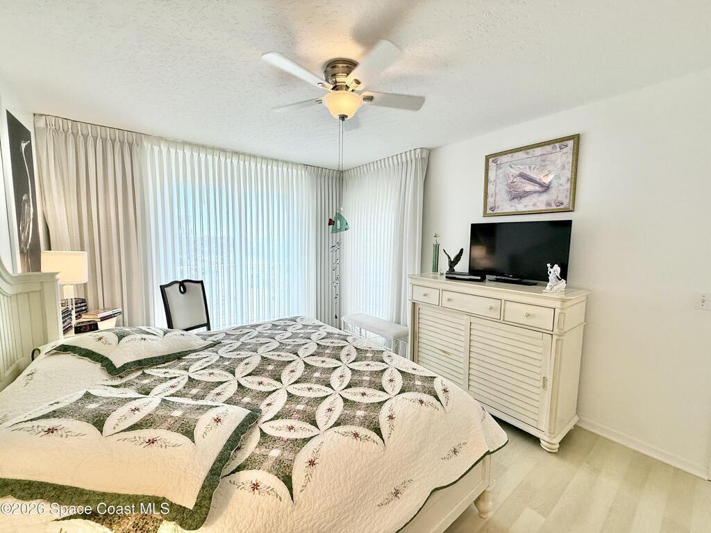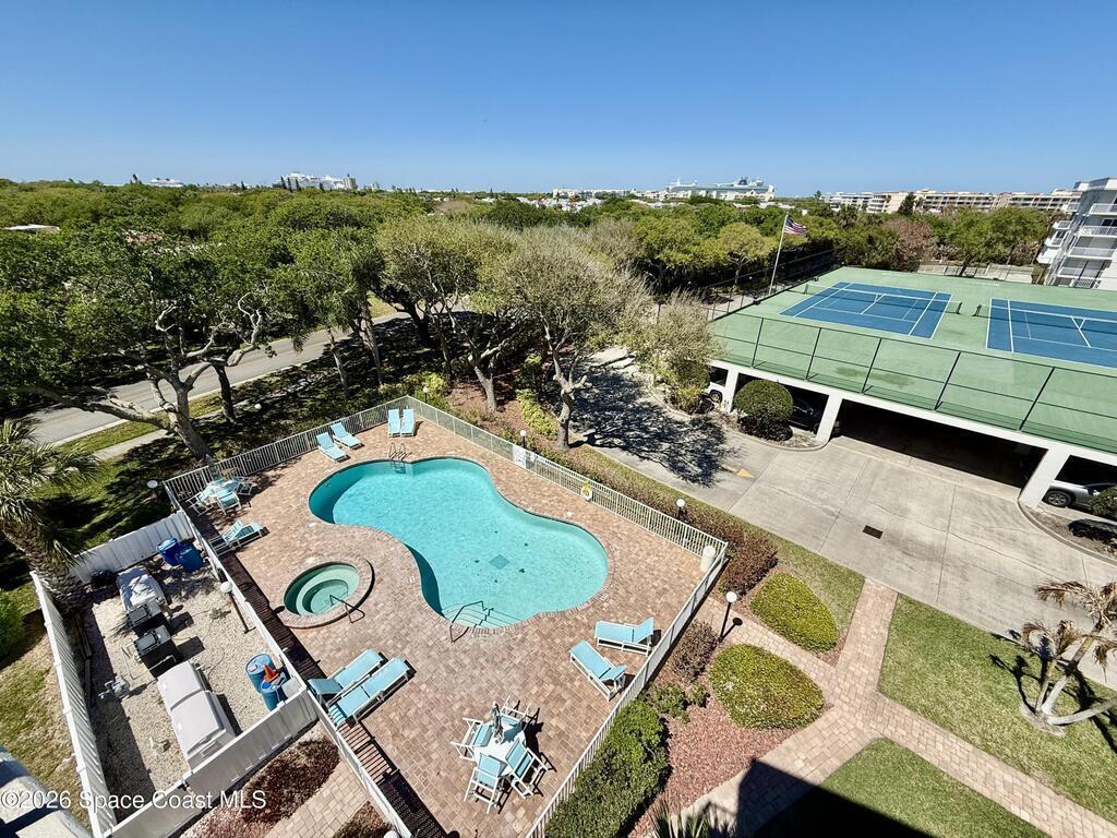 GORGEOUS UPGRADED 3 BEDROOMS/ 2.5 BATHROOMS CORNER PENTHOUSE!! BEAUTIFUL Ocean & Port view from private balcony. NEW Quartz countertops in kitchen, bathrooms, laundry room; New floors in guest bedrooms, New impact hurricane windows, New A/C 2025, New hurricane shutters & electric shutters in guest bedrooms, New medicine cabinets, New light fixtures & ceiling fans, New water valve in laundry room, and private 2 car garage under building w/ new flooring. XLNT location near all thoroughfares w/ easy access to Port Canaveral, KSC, Patrick AFB, restaurants, shopping centers, 520, 528, just about an hour to Orlando & attractions. A MUST SEE!!