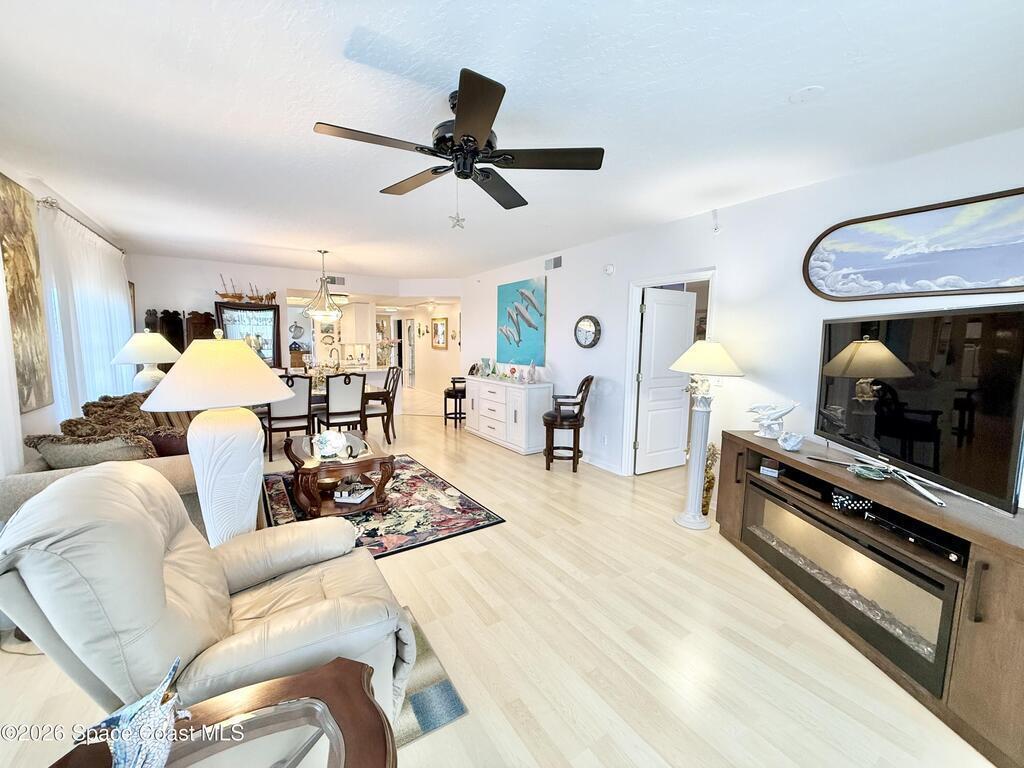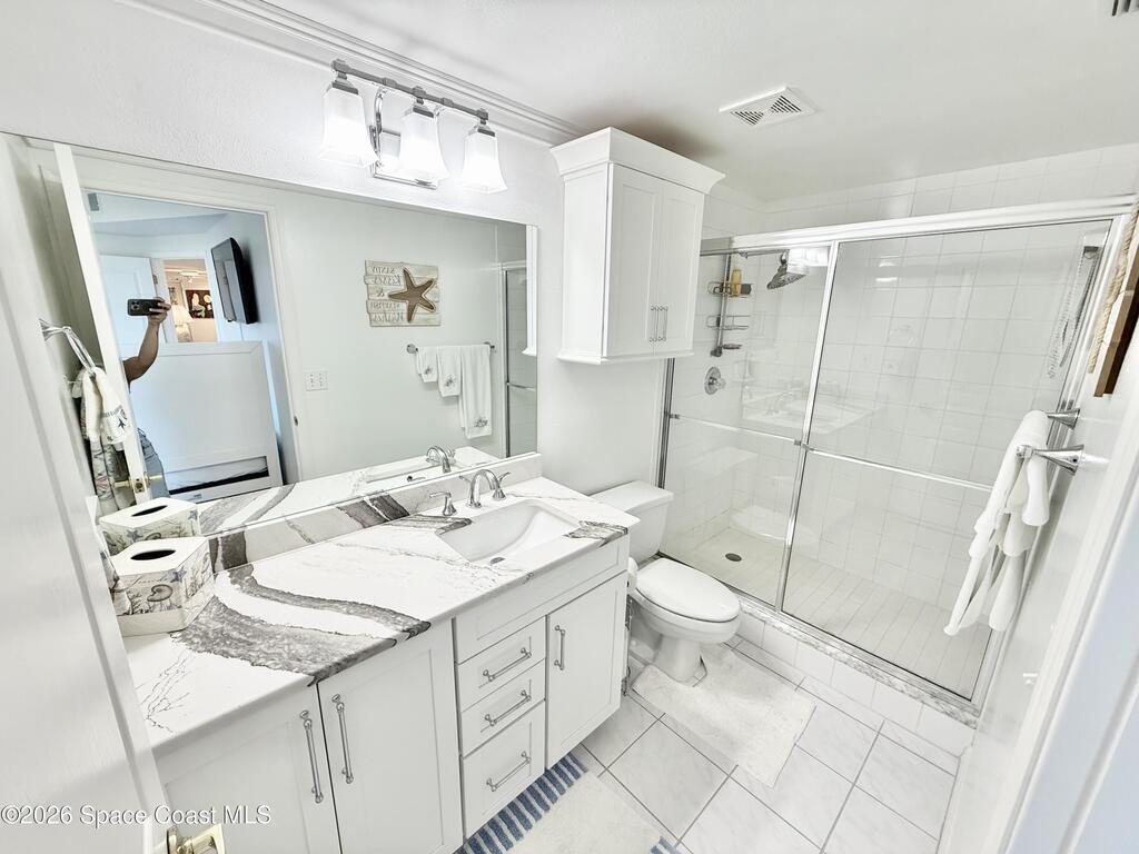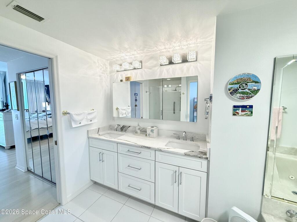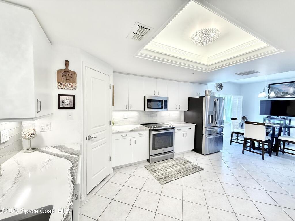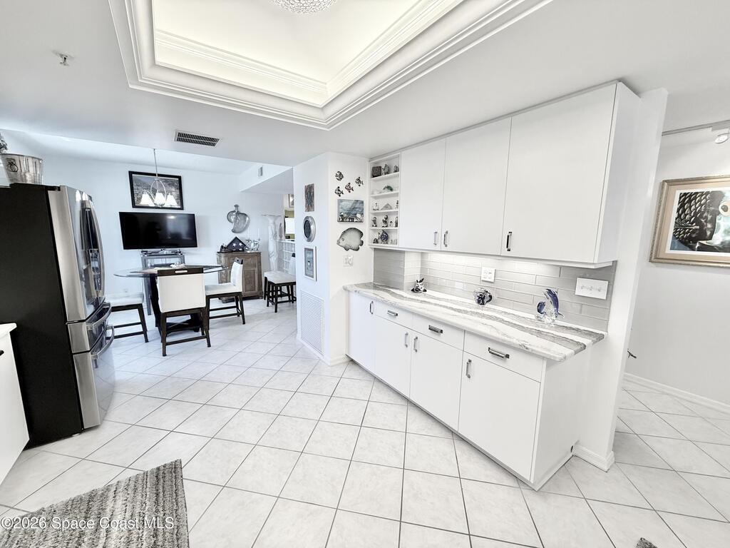 GORGEOUS UPGRADED 3 BEDROOMS/ 2.5 BATHROOMS CORNER PENTHOUSE!! BEAUTIFUL Ocean & Port view from private balcony. NEW Quartz countertops in kitchen, bathrooms, laundry room; New floors in guest bedrooms, New impact hurricane windows, New A/C 2025, New hurricane shutters & electric shutters in guest bedrooms, New medicine cabinets, New light fixtures & ceiling fans, New water valve in laundry room, and private 2 car garage under building w/ new flooring. XLNT location near all thoroughfares w/ easy access to Port Canaveral, KSC, Patrick AFB, restaurants, shopping centers, 520, 528, just about an hour to Orlando & attractions. A MUST SEE!!
