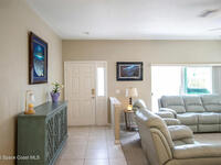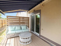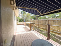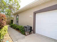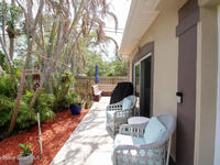 Welcome to the joy of beach life! Immaculate, virtually maintenance free, move in ready townhouse, with incredible upgrades and enhancements. This spacious 1783 sq ft layout w approximately 1400 sq ft under air, single story, 3 Bed, 2 Bath, 2 car garage, end unit Townhome, gives you the privacy and true feeling of a single private home with the convenience and ease of condo/townhouse living. New roof in 2024, new exterior paint in 2025, incredible outside deck fully rebuilt in 2022 w Timbertech composite, auto retractable Electric Sunsetter awning, new garage flooring/coating professionally installed in 2025, new hurricane rated impact sliding glass doors/all windows in 2026, lovely exotic high-level granite in kitchen with custom wooden cabinets, premium stainless-steel appliances, and so much more. This hidden gem checks all the boxes as your forever home, first time home, beach get away, or investment property, with the flexibility of only 1-month minimum rental terms.