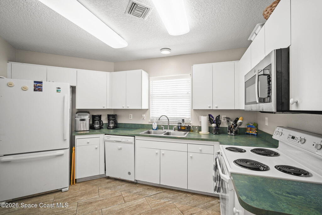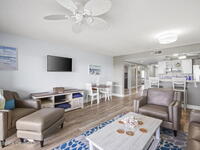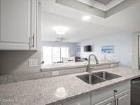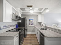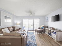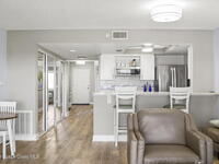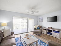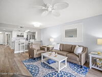 Tucked away in a gated Cape Canaveral community, this updated condo offers privacy with unbeatable convenience--just minutes from restaurants and Jetty Park. Inside, natural light fills the space, highlighting matching vinyl flooring throughout. The modern kitchen features quartz countertops, stainless steel appliances, and a breakfast bar overlooking the family room. The bedroom includes plantation shutters and an updated, spacious bath with a walk-in shower. Step onto the oversized balcony (with NEW hurricane shutter) to relax with ocean breezes and enjoy weekly cruise ship views. Amenities include a clubhouse, tennis and pickleball courts, plus a heated pool and spa. Complete with newer A/C and a private 1-car garage under the building. All concrete restoration has been completed!