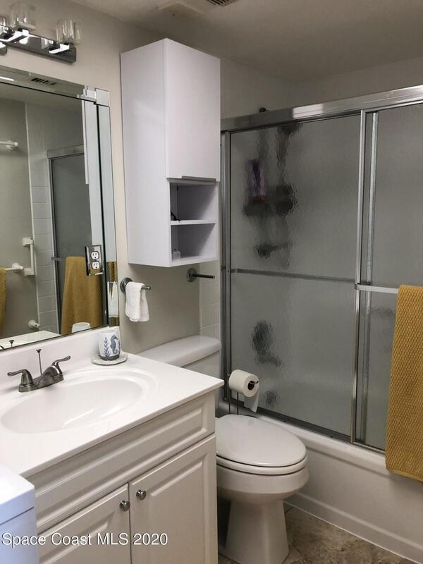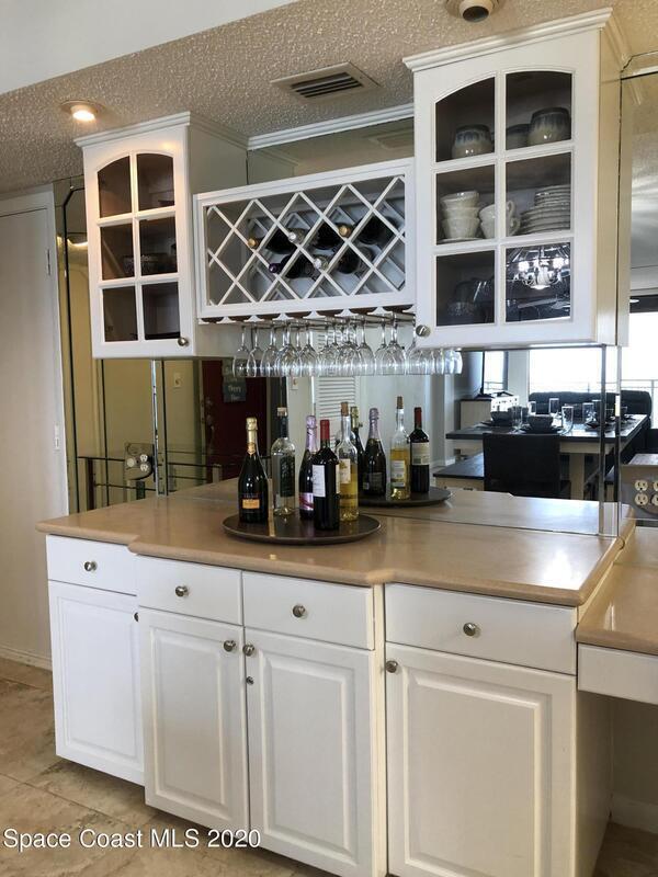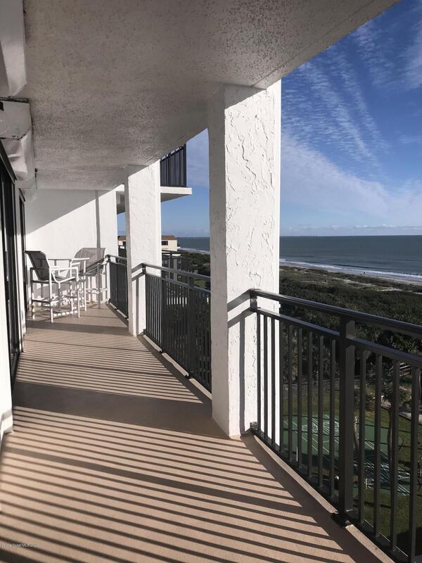 Direct Ocean Views from this lovely 2 bedroom 2 bath condo including a garage. Fully furnished and fully stocked kitchen. Complex has heated pool, tennis, exercise room and club house. Watch Rocket launches from your own balcony ! Close to restaurants, shopping, Cocoa Beach Pier and Ron Jon's Surf Shop! Available short term Winter 2026 at higher price.