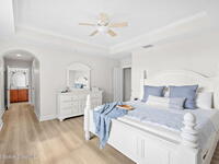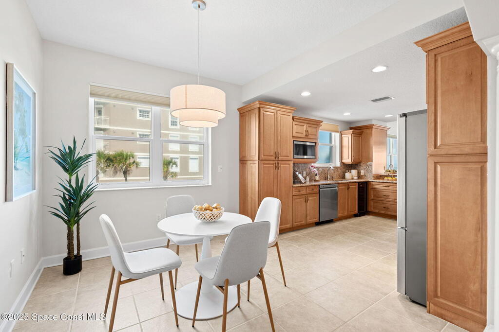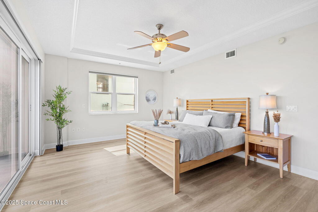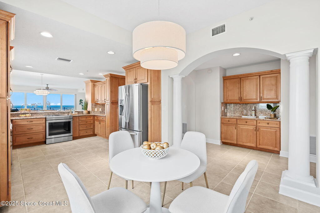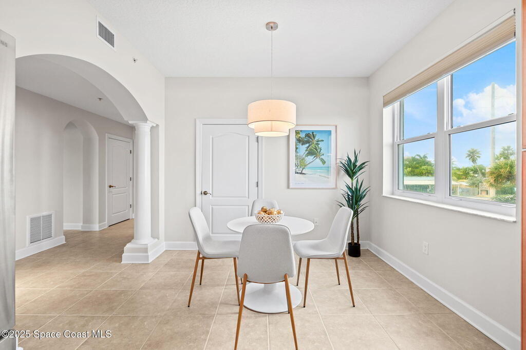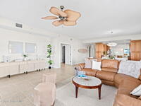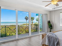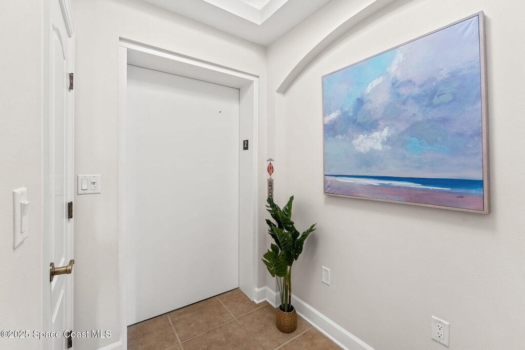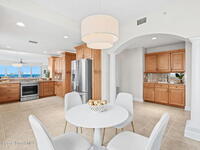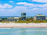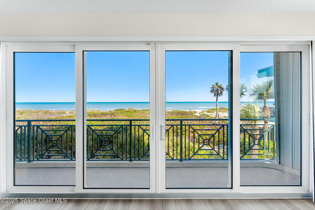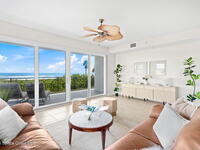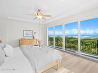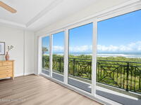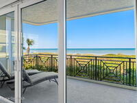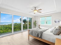 This rare, full-floor residence offers 2, 946 square feet of luxury within a boutique six-unit building. The unparalleled coastal living on the Space Coast in this exquisite oceanfront condo at Riomar where exclusivity meets timeless elegance.This spacious residence features three bedrooms, each with its own ensuite bath, plus an additional guest bathroom.Enjoy 360-degree panoramic views with unforgettable sunrises over the Atlantic Ocean and stunning sunsets over the Indian River.Located on the second floor with private elevator access, this freshly painted residence welcomes you with a beautifully updated interior, including new flooring in all bedrooms. The open-concept layout is anchored by a generous kitchen with custom wood cabinetry, granite countertops, and ample space for entertaining or relaxing in comfort.All doors and windows are hurricane impact-rated throughout. The windows are fitted with electric roll-down shutters,