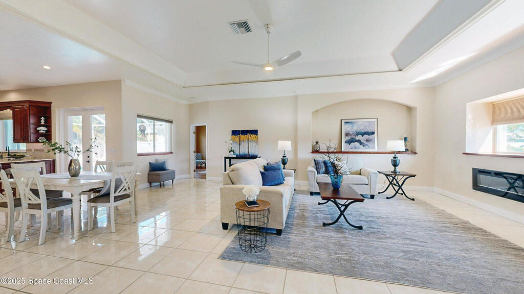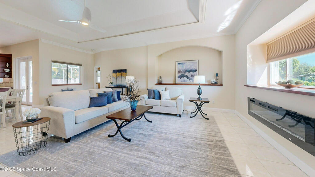 Welcome to your dream coastal retreat! This completely updated, move-in-ready single-family home is ideally situated on a beautifully landscaped corner lot in the heart of Cocoa Beach, just a short walk to the sand and surf.Step inside to discover a bright, open floor plan with soaring cathedral ceilings, filling the home with natural light and spaciousness. The gourmet kitchen is a chef's paradise, featuring luxurious quartz countertops, custom cabinetry, and top-of-the-line Viking gas appliances - perfect for entertaining or everyday living.Enjoy cozy evenings by the elegant electric fireplace, and rest easy with the peace of mind provided by a whole-home generator--ready for any Florida weather.Outdoors, escape to your private oasis with a screened-in saltwater pool, surrounded by lush, mature tropical landscaping that offers beauty and privacy. Whether you're relaxing poolside or hosting guests, this home blends comfort and style effortlessly. $5, 000 credit offered!