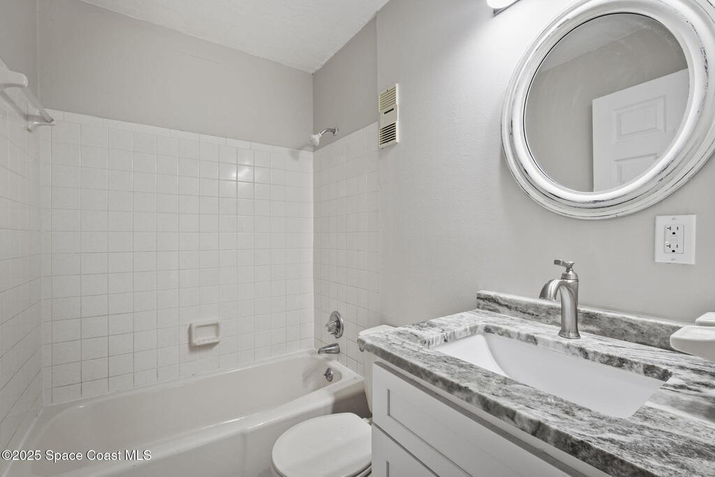 Freshly updated 2 bedroom 2 bath condo/apartment close to Downtown Cocoa Beach. Open floor plan with white shaker cabinets, granite island, and stainless appliances. Master bedroom has private balcony overlooking park, walk-in closet, and updated bathroom. Large guest bedroom share full 2nd bathroom. Private laundry in unit Other updates include fresh paint, interior doors, baseboards, and efficient hurricane windows.