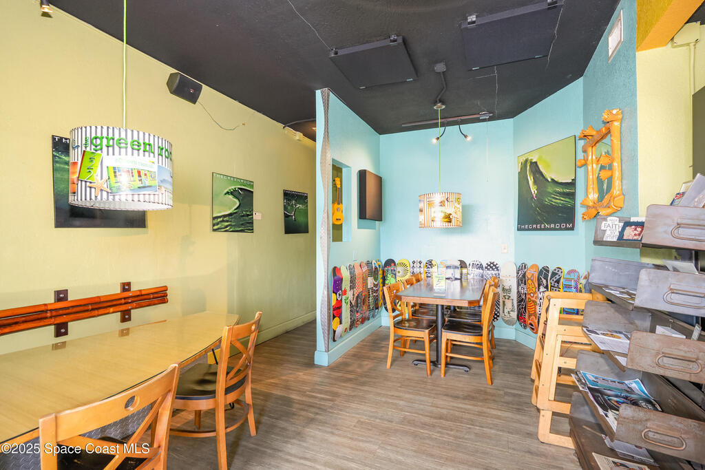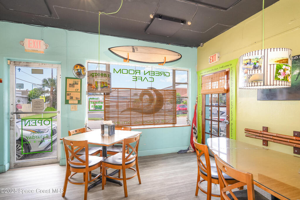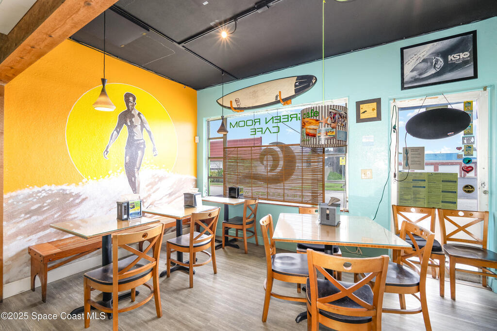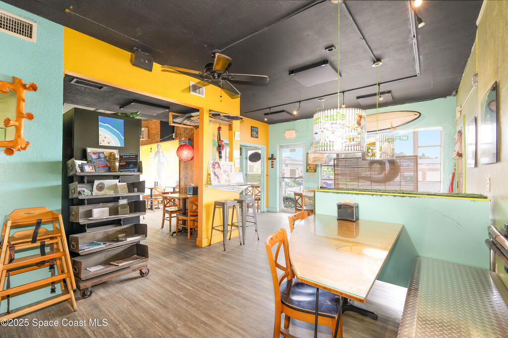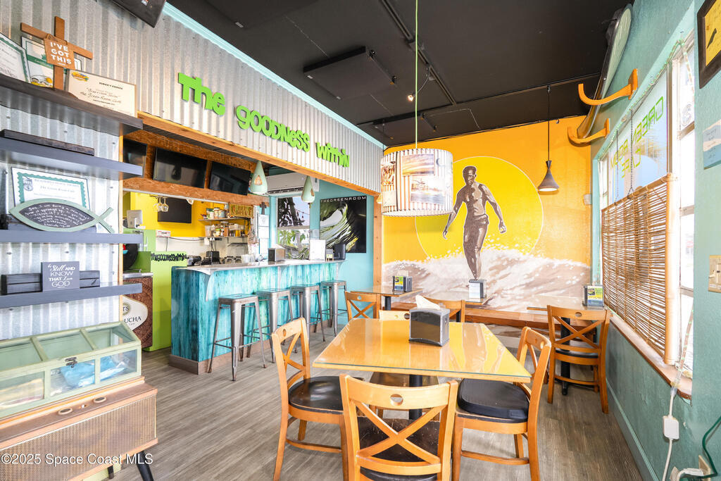 Positioned in the downtown Cocoa Beach redevelopment center in one of Florida's most desirable coastal business corridors, this iconic location offers exceptional visibility, convenience, & plenty of parking. The 1, 133 SF interior is filled with natural light & currently operates as a restaurant. A shady outdoor seating area with a convenient pass-through window adds appeal for cafe or casual dining concepts. Ideal for continued use as a restaurant or conversion to other mixed-use commercial options. Located just blocks from the Ocean in the booming Space Coast market, this is an excellent opportunity to jump in on the explosive growth happening in Brevard County. This well maintained commercial condo features a 2019 Roof. Units A & B are also for sale (inquire for details). Business is not for sale.