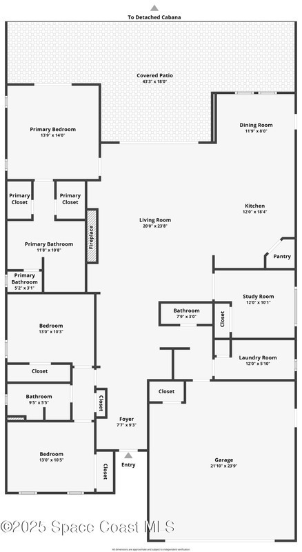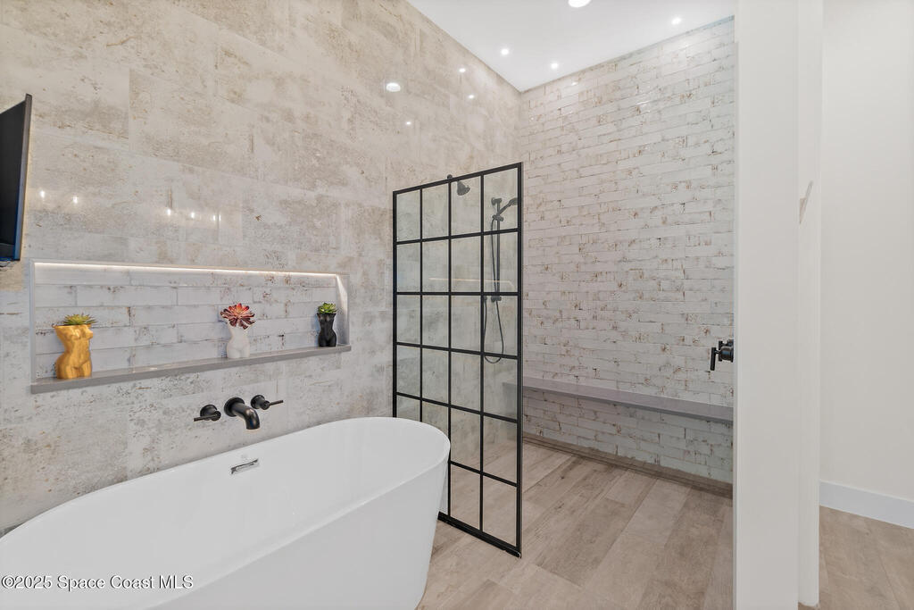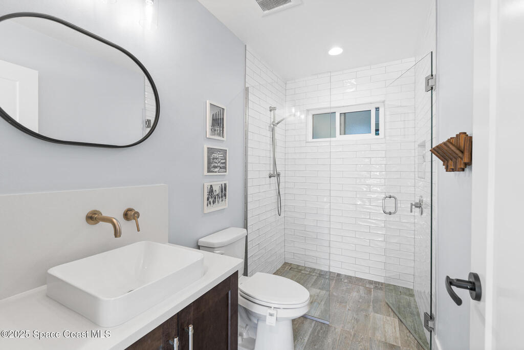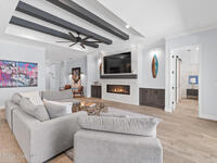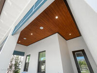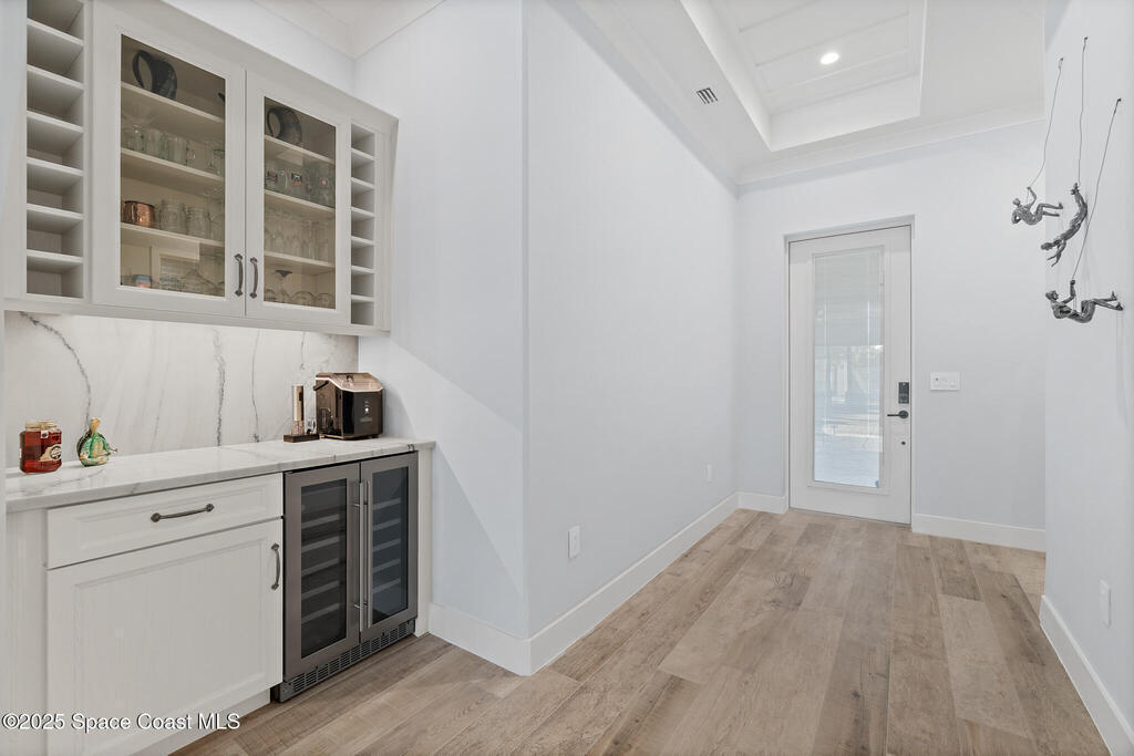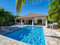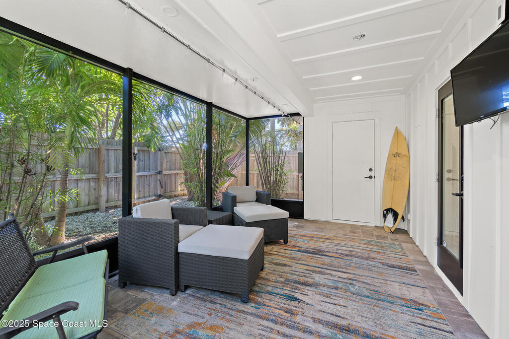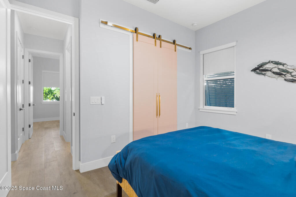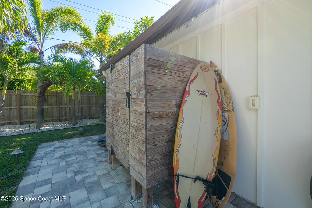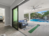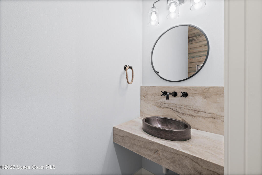 Welcome to your modern beachside oasis. Tucked between the Atlantic Ocean and the Banana River, in the coveted Snug Harbor community of Cocoa Beach. Built in 2020, this stunning 5-bedroom, 3.5-bath residence with nearly 2, 500 sqft of living space perfectly blends luxury, efficiency, and the laid-back Florida lifestyle. Every detail of this home was designed to impress, from the chef's kitchen and high end finishes to the resort style backyard that's truly an entertainer's dream. Step inside and experience an open, sun filled layout with vaulted ceilings, custom wood beam inlays and a cozy gas fireplace that anchors the living area. The heart of the home is a designer kitchen featuring an oversized island, induction cooktop, vented range hood, walk-in pantry, quartz countertops, and sleek cabinetry that combine style and function. Whether you're hosting friends or cooking a quiet meal at home, this space was built for connection. The primary suite feels like a private retreat,