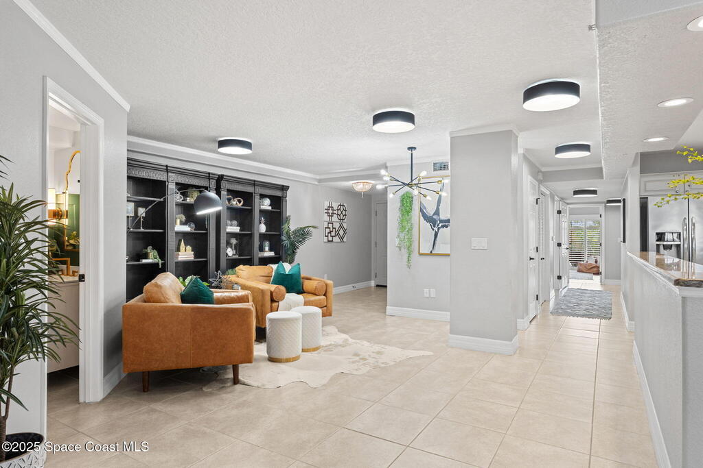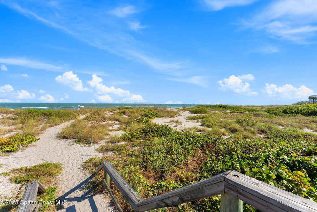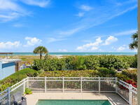 LUXURY SLICE OF SOUTH COCOA BEACH PARADISE. - NOW FOR LEASE! Enjoy 2, 713 sq. ft. of luxurious coastal living at The Almar, an exclusive 8-unit boutique condominium. This professionally designed 2nd-floor residence offers 3 spacious bedrooms, a private office with closet (or optional 4th bedroom), 3 full baths + a powder room, & a split floor plan for privacy & comfort. The oceanfront primary suite captures breathtaking sunrises & rocket launches, while riverside bedrooms showcase spectacular sunsets. Enjoy both eastern & western balconies, a spa-like bath with soaking tub, double vanity, and generous walk-in closets. The expansive kitchen features solid-surface countertops, a large island, breakfast bar, & designer lighting. Additional highlights: hurricane shutters, solid flooring throughout, cozy lounging areas, a 2-car garage, community pool. Small dog permitted. Annual lease preferred; 6-7-month term available at a premium. Close to Downtown Cocoa Beach dining & entertainment.