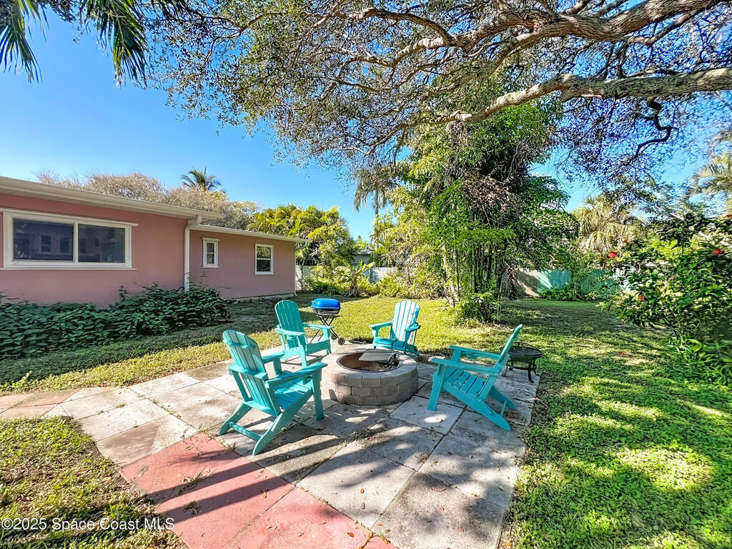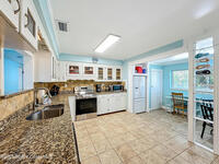 Just five-minutes stroll to the famous Cocoa Beach, this vacation gem sits on a large lot with mature trees and plenty of space to add your dream pool. This nicely sized 3-bedroom, 2-bath home features generous closets and a 2-car garage with extra storage. Tastefully furnished, it is truly move-in ready or the perfect income-producing property. This single-story home is a desirable option for vacation rentals and part time owner occupancy, or long term rental for space industry employees. NO HOA. The living area is filled with natural light and includes new ceiling fans and vinyl plank flooring. It flows seamlessly into the dining nook and kitchen, while a charming den with French doors opens to the spacious backyard oasis. Enjoy the fire pit, shaded dining/seating deck, and ample room for gatherings or even watch rocket launches! The cozy front porch is the ideal spot to unwind and take in the sunset. The roof was replaced 2021, water heater and washer&dryer 2023, dishwasher 2024.