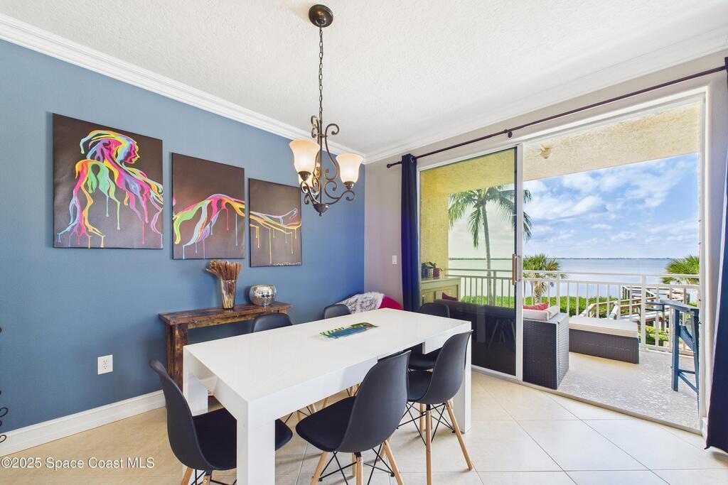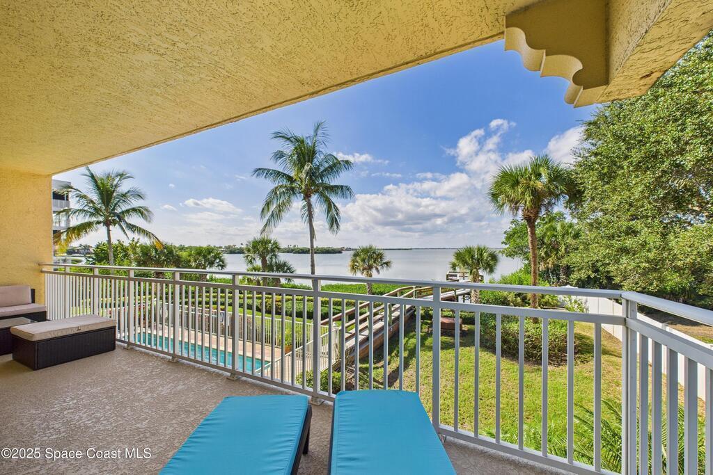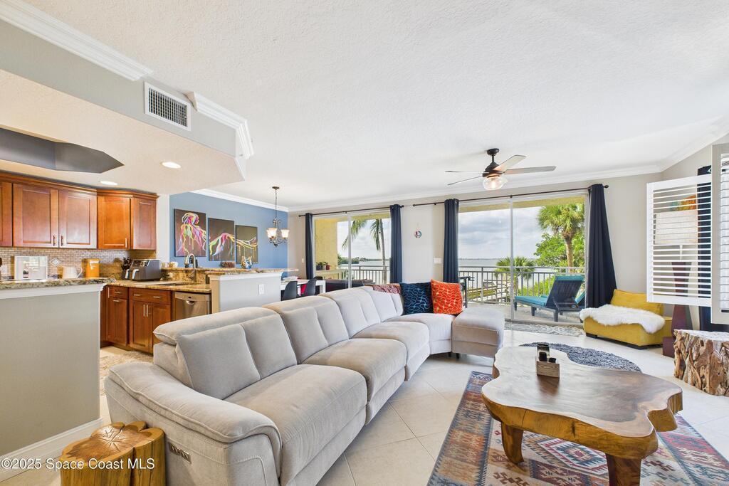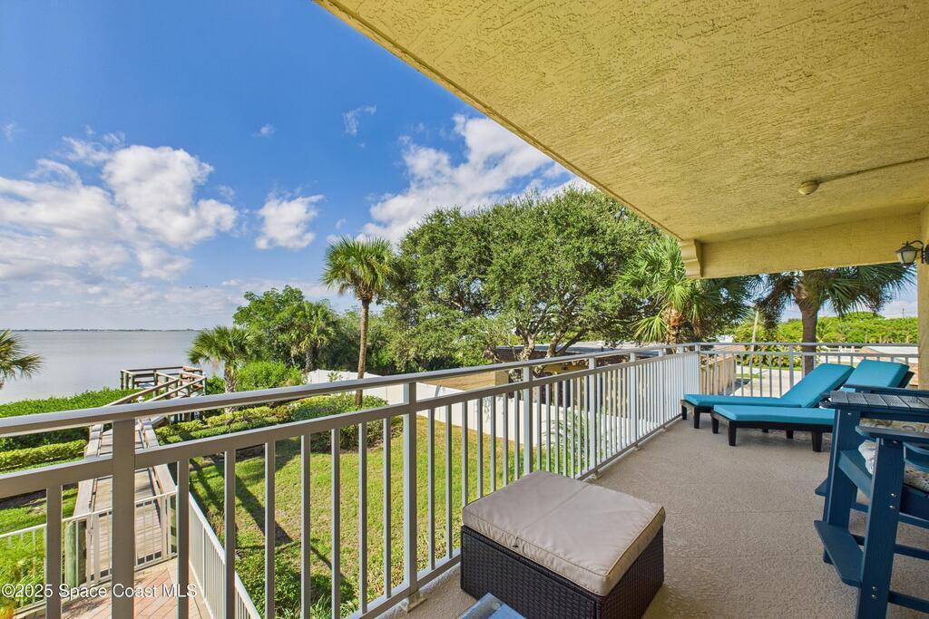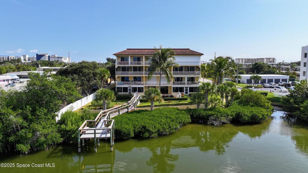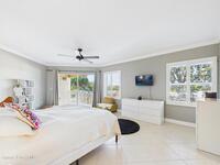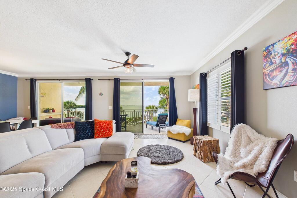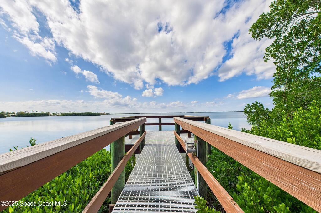 Spectacular DIRECT BANANA RIVERFRONT CORNER UNIT offering breathtaking views and a peaceful waterfront lifestyle in the boutique 11-unit community of Garden Bay. Rare opportunity to own an end unit in this highly desirable Cocoa Beach complex--just a short stroll to the ocean, restaurants, and shopping. Nearly 2, 600 sq ft of luxury living with 4 bedrooms, 3.5 baths, and a private 2-car garage. High 8.5' ceilings, crown molding, travertine and wood flooring (no carpet), and impact windows with plantation shutters throughout. The gourmet kitchen boasts granite countertops, custom cabinetry, tile backsplash, and newer stainless appliances overlooking the water. Spacious owner's suite features double walk-in closets, private balcony, and spa-inspired bath with jetted tub and marble shower. Each guest bedroom has its own ensuite bath for privacy and comfort.