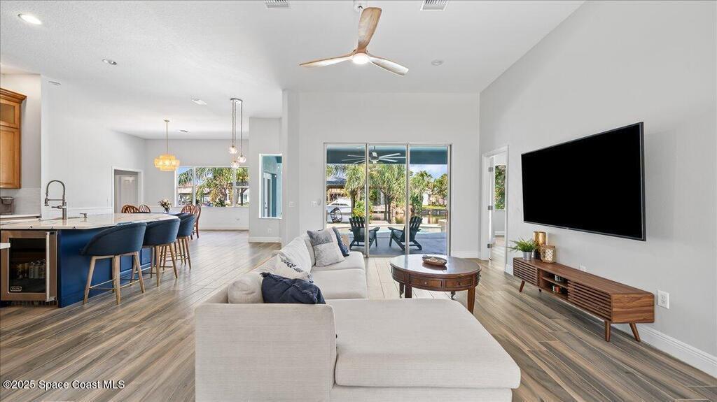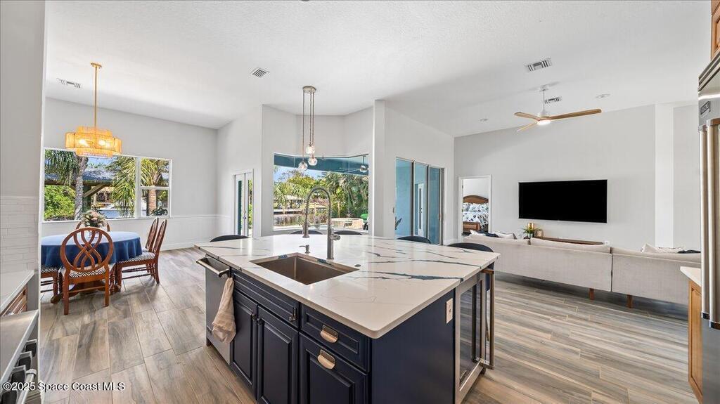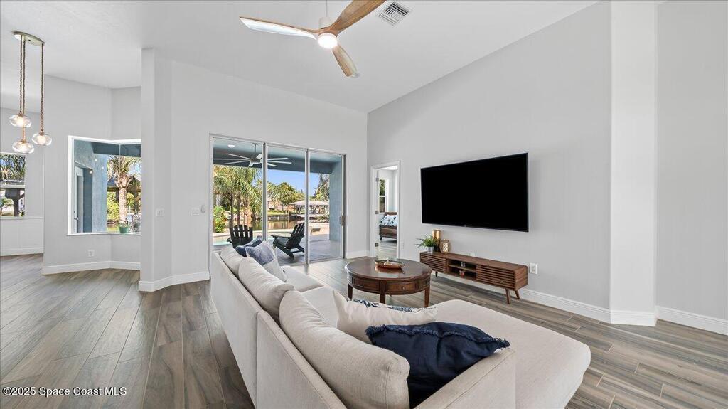 100K price drop! Viewings available 10th-12th. Seller wants fast sale. Perfectly located in a friendly neighborhood walkable to restaurants, shops, nightlife, and the beach, this home delivers soaring ceilings, a bright open floor plan, granite countertops, high-end appliances, and brand-new sliding glass doors that bring the sunshine in.With 5 bedrooms, 4 bathrooms, and two laundry areas, there's room for everyone to relax in style. Step outside to your private resort-style oasis featuring a covered patio, sparkling pool, and soothing spa. Stroll out back to the covered dock with boat lift and head straight onto the water for sunset cruises.A newer metal roof and updated HVAC.Home needs some cosmetic repairs as it has been a rental property.