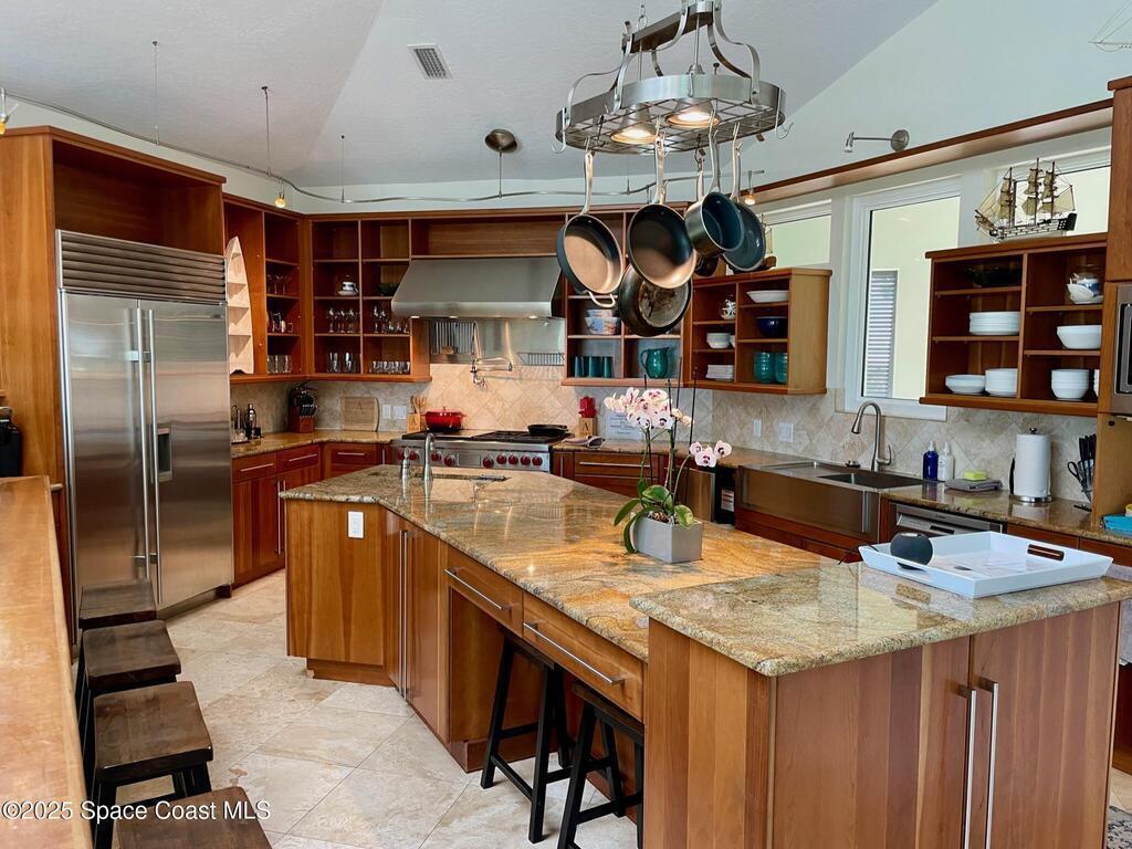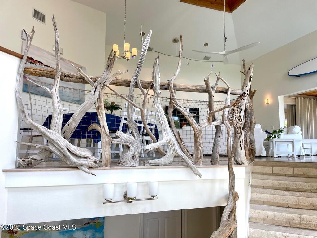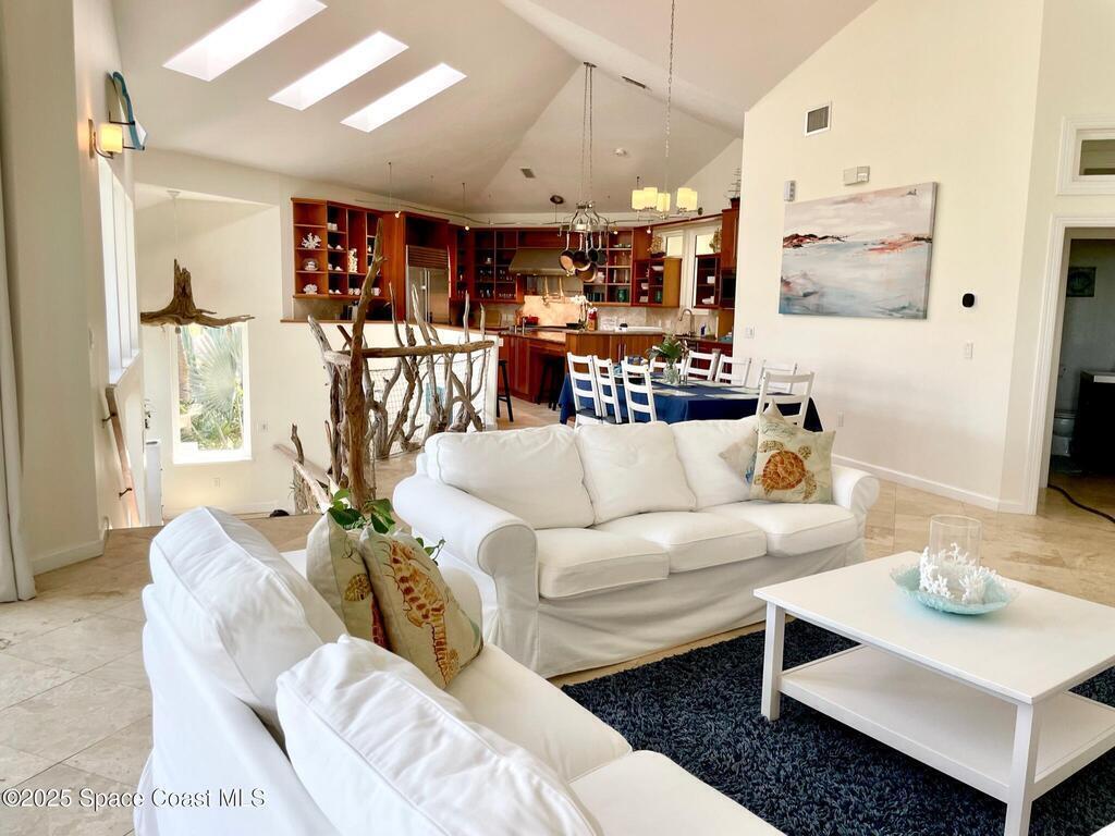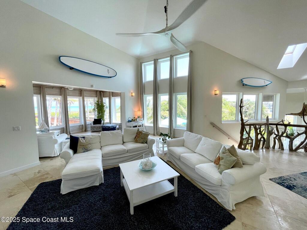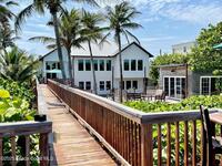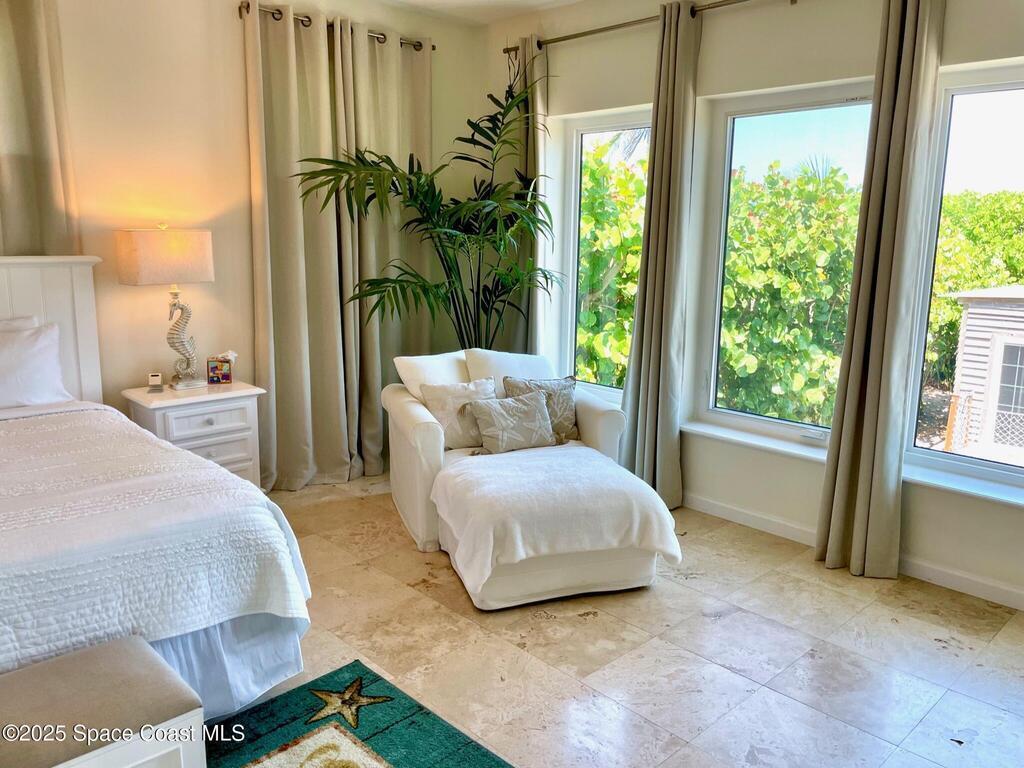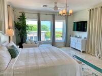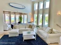 Experience coastal luxury in this exceptional direct oceanfront estate offering approx. 150 ft of private beach frontage. Set on a generous 12, 000+/- sq ft lot, this refined retreat features over 4, 000 sq ft of living space with 4 bedrooms and 3 baths, designed for both relaxation and entertaining. Three spacious patios with BBQ area create the ideal setting for gatherings, poolside lounging, or enjoying s'mores by the fire pit under the stars. Take in breathtaking sunrises, rocket launch views, and seasonal sea turtle hatchings from your own backyard. The first level includes a private mother-in-law suite with living area and wet bar, perfect for guests. Upstairs, floor-to-ceiling windows showcase sweeping ocean views. The gourmet kitchen is equipped with a Sub-Zero refrigerator, Wolf range with warming drawer, stainless steel appliances, and ample workspace. Additional features include dual split A/C, whole-home water softener, and generator. Live your best life in paradise every day.