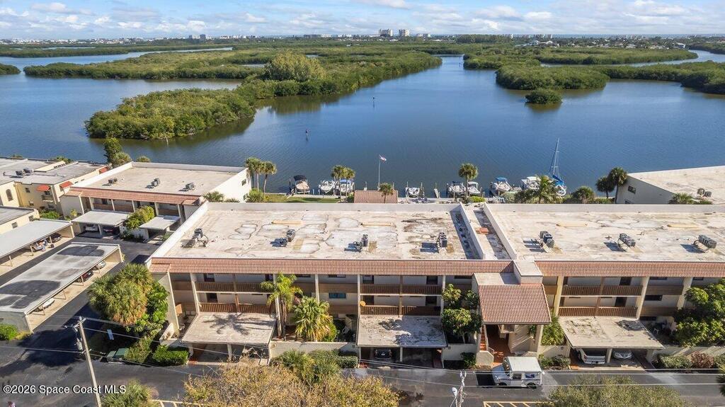 Truly mesmerizing direct riverfront views from this top floor 2 bedroom, 2 bathroom condo overlooking the Banana River in the heart of Cocoa Beach. Enjoy kayaking, boating and fishing from your backyard and playing golf at the 27 hole Cocoa Beach Country Club across the road from your front door. Watch manatee and dolphin play, the sun as it rises and the annual Christmas Boat Parade from the comfort of your private glass enclosed balcony. This updated condo features: New Air Conditioning unit, plantation shutters, storm shutters, all tile flooring, updated kitchen and bathrooms and is freshly painted. The community offers an elevator, large riverfront pool, gazebo, boat dock, kayak storage area, carport parking and much more. Just across the street is a public golf course, olympic sized swimming pool and tennis courts. The location couldn't be better... its quiet and yet close to the beach, shopping and restaurants. Come see the view and you will fall in love with this condo.