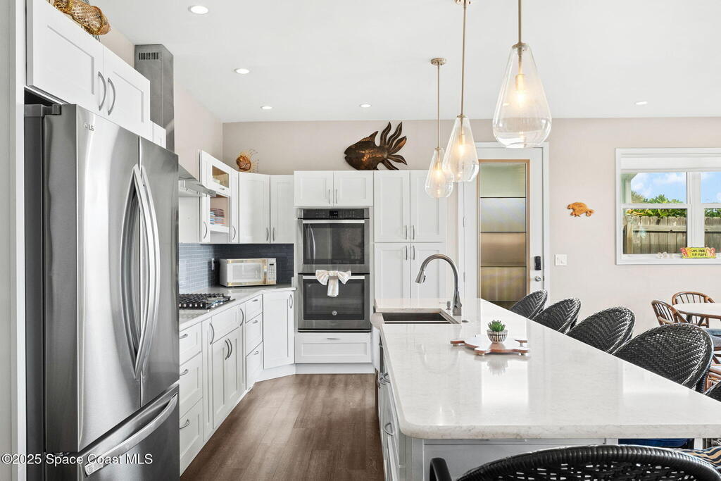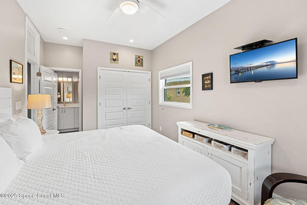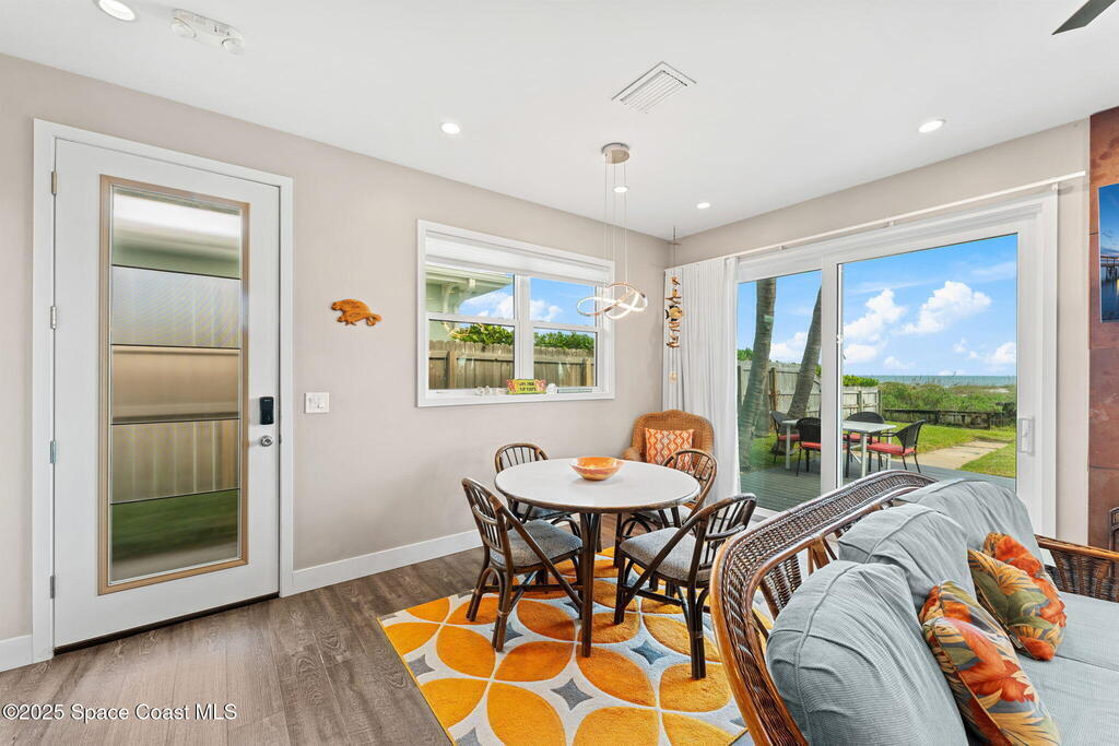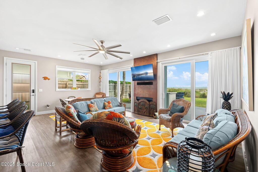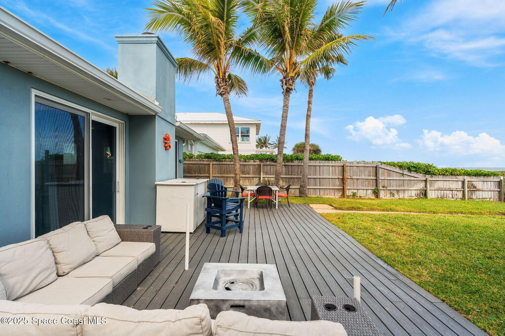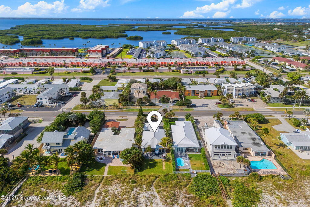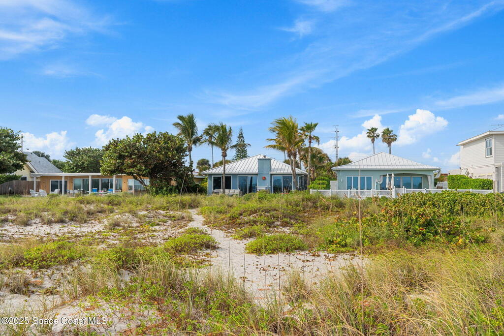 Welcome to ''Cocoamo'' -- a rare oceanfront gem in South Cocoa Beach! This single-family home was completely rebuilt & reimagined in 2018, showcasing elevated coastal design & worry-free living. Enjoy impact-rated windows & doors, raised ceilings, updated electrical & plumbing, & a durable metal roof. The property features a 1-car attached garage plus a 2-car detached garage w/ a convenient passthrough door, offering ample storage for vehicles, boards, & beach toys. Inside, the open kitchen & living areas frame breathtaking ocean views, while the primary suite offers a private vantage point to watch the sunrise over the Atlantic. With approximately 50 ft of direct beach frontage, this home perfectly balances serenity & opportunity. Whether you envision it as your private seaside retreat or a proven income-producing Airbnb (fully licensed w/ the City of Cocoa Beach & performing exceptionally well), Cocoamo delivers. Offered fully furnished, this turnkey coastal residence is move in ready.