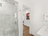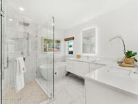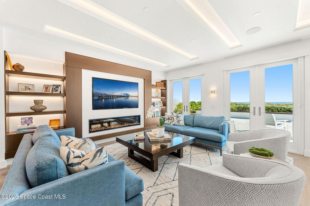 Welcome to TurtleGate, a fully renovated and gated coastal retreat blending modern luxury with low-maintenance oceanfront living. Crafted by renowned builders, this estate home's 2023 renovation features block & frame construction, a metal roof, and reinforced concrete walls for exceptional strength. Inside, enjoy an open-concept layout with luxury flooring, designer lighting, raised ceilings and custom features. The chef's kitchen boasts a Wolf range, Dacor fridge, Cove dishwashers, dual islands, Calacatta quartz and coffee bar. The living room opens to the ocean with built-in walnut bookcases and fireplace. Just off the 2-story glass enclosed staircase is the den with a 10' quartzite bar, smoked glass shelves and wine cooler. Two primary suites--one on each level--offer spa-like baths & views. The 1, 100 sq. ft. AC garage shines with a finished floor, custom cabinets and 30' of butcher block countertops. TurtleGate enjoys a prime location with the privacy of its own residential beach.