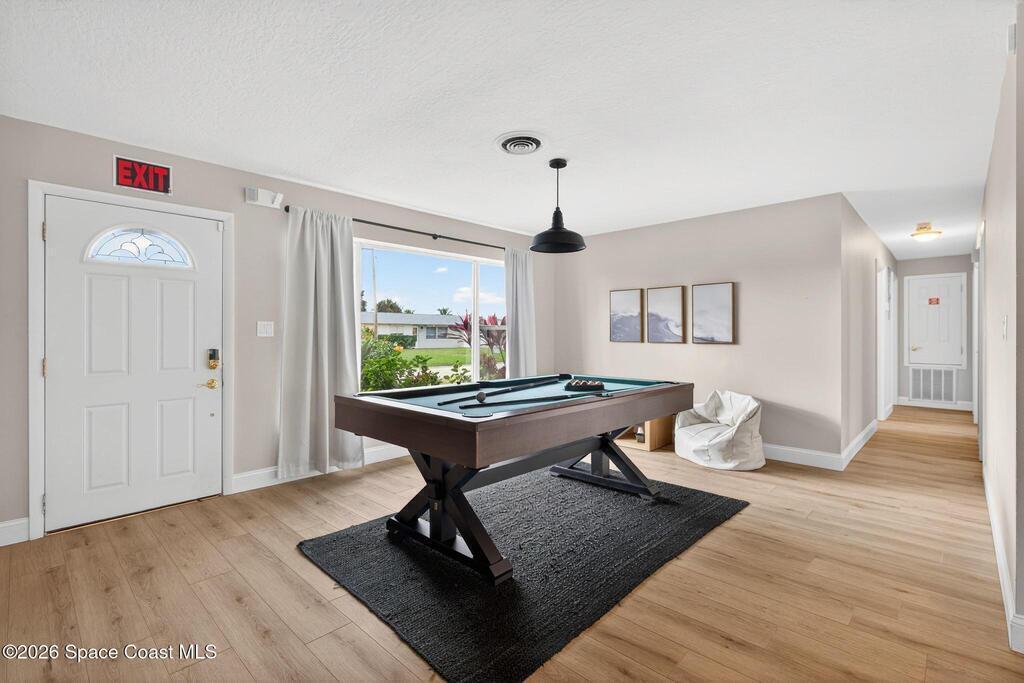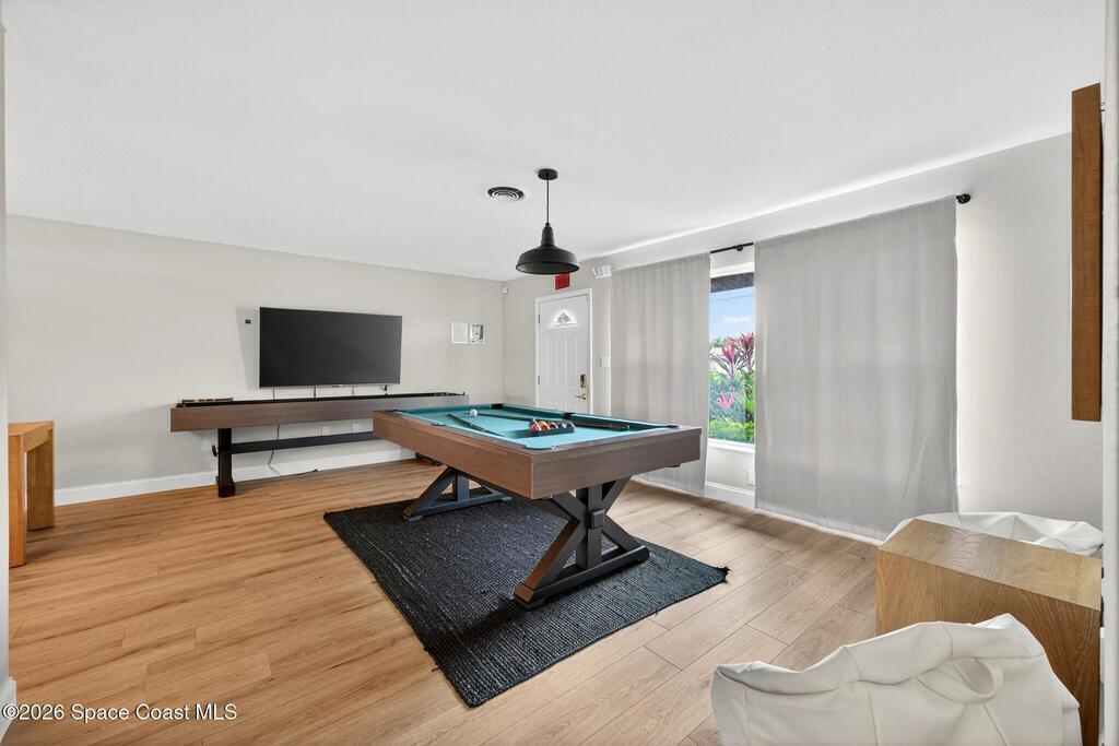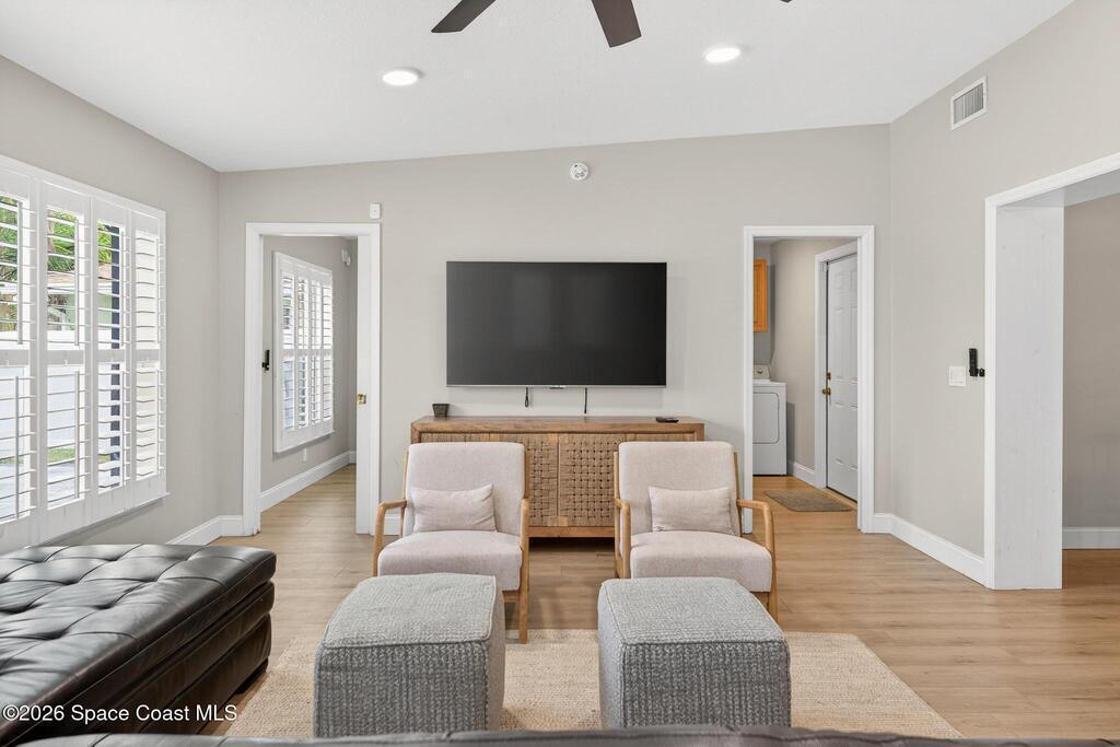 Wake up to shimmering canal views and effortless coastal living at 113 DeLeon Rd in Cocoa Beach. This rare canal-front home delivers the Florida lifestyle buyers crave--private heated saltwater pool with splash pad, seawall, dock, and direct access to the Banana River canal, all just minutes from the beach, dining, and local attractions. Inside, the 4-bedroom, 2-bath layout offers two separate living areas ideal for entertaining or unwinding. The upgraded kitchen features granite countertops and solid wood soft-close cabinetry with easy flow to the outdoor living space. Step outside to a resort-style backyard perfect for sunset cruises, paddleboarding, or poolside gatherings. With no HOA, metal roof, solar (assumable), and zoning that may support short-term rental use (buyer to verify), this property is ideal as a primary residence, second home, or investment opportunity. Waterfront homes like this in Cocoa Beach are rare--don't miss it.