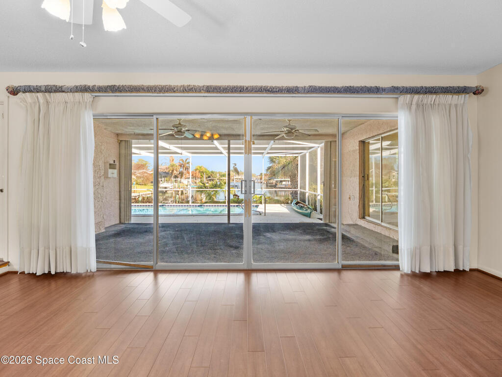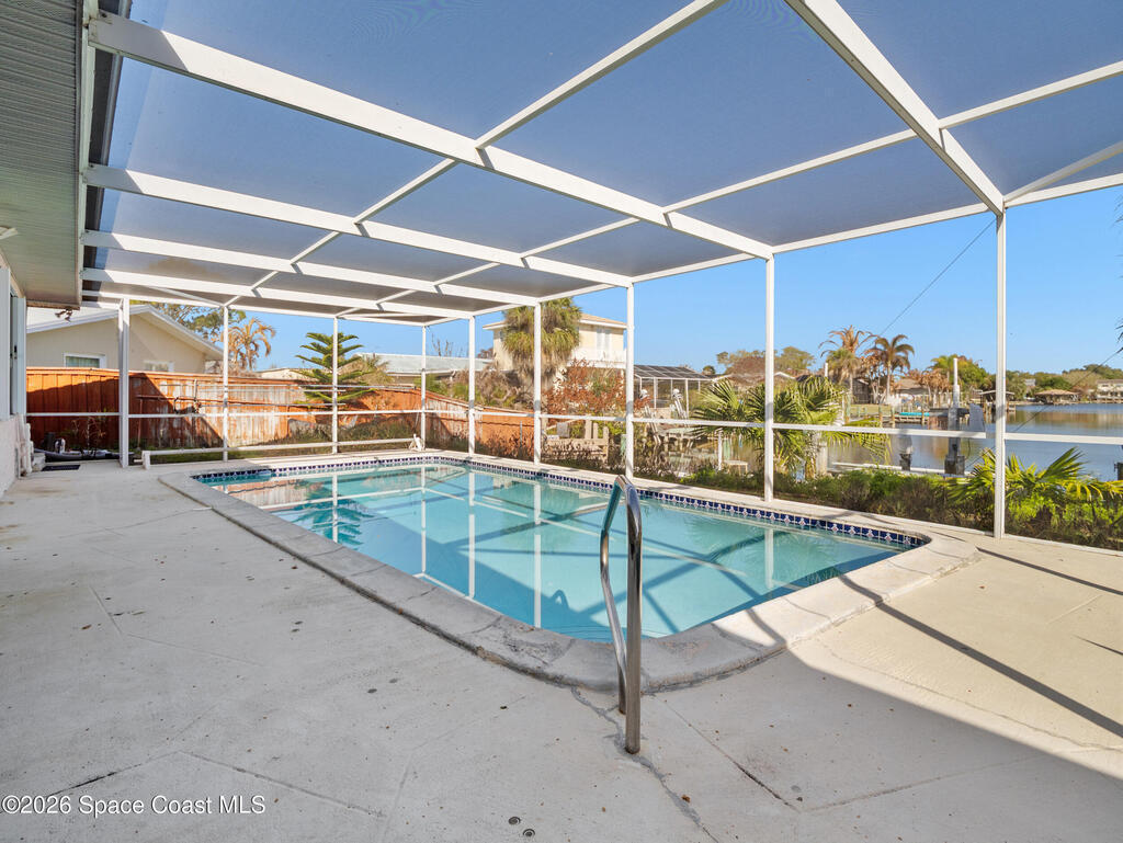 Welcome to your Cocoa Beach canal-front oasis, perfectly positioned at the end of a navigable canal with direct access to the Banana River. This well-maintained single-family home offers 1610 square feet of living space, a sparkling pool, and a private dock ideal for boating, fishing, or simply enjoying the waterfront lifestyle. The property features solid concrete block construction, a durable tile roof, updated electrical systems, and hurricane shutters for added peace of mind. A huge screened room provides the perfect indoor-outdoor living space, offering plenty of room for entertaining or relaxing while overlooking the tropical surroundings. Inside, the home has been lovingly cared for over the years and is ready for your personal interior updates and enhancements. Additional conveniences include a two-car garage and ample parking. Located near historic South Cocoa Beach, you'll enjoy quick access to local restaurants, entertainment, shopping, and some of the area's best schools!