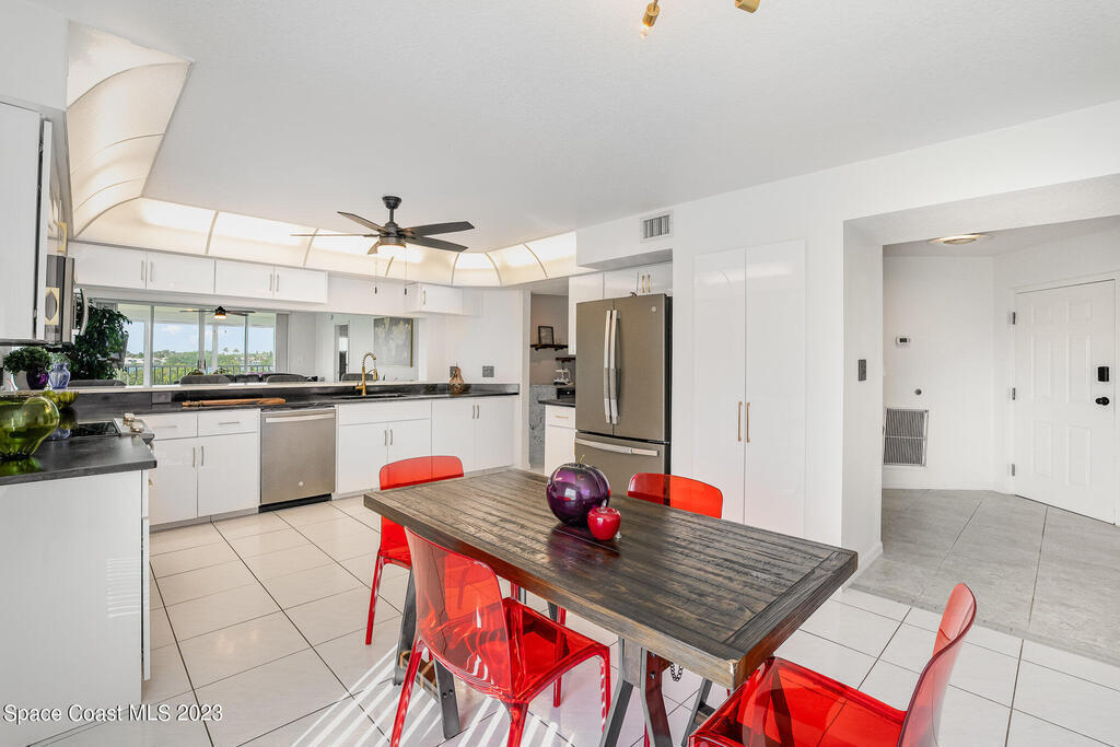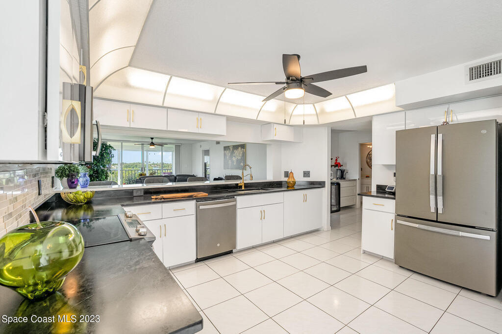 Motivated sellers - ready for a smooth and timely transaction. Bring your offer.Just reduced - exceptional value for a furnished Banana River corner unit with expansive water views. Rare opportunity to own a spacious waterfront condo with a deeded boat slip! No upcoming assessments, with strong reserves. Appraised in January 2026 and priced at value!! This is a unique end unit with breathtaking unobstructed views of the Banana river. The living space includes a one of a kind wine/coffee bar. The extra large owners suite features 2 walk-in closets, oversized modern ensuite bathroom with lots of storage, makeup vanity with builtin Bluetooth speakers and LED lighting creating a private oasis. Furry family members, also have their own built-in elevated doggy wash and grooming area.This property comes with 2 under building parking spaces complete with private storage lockers and deeded boat slip. A true riverfront gem!