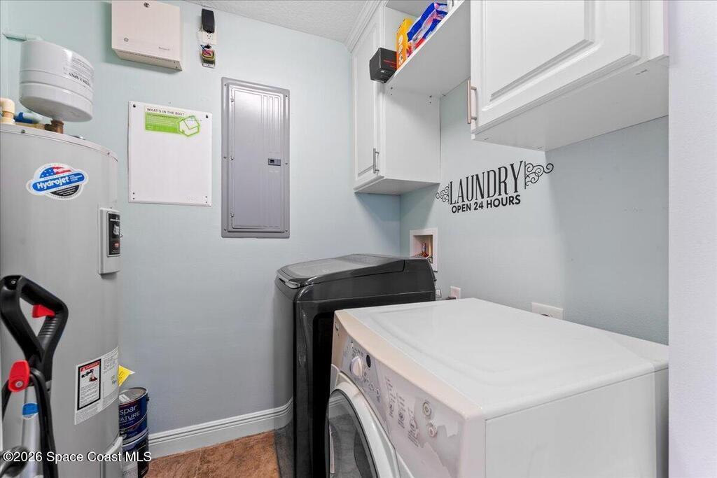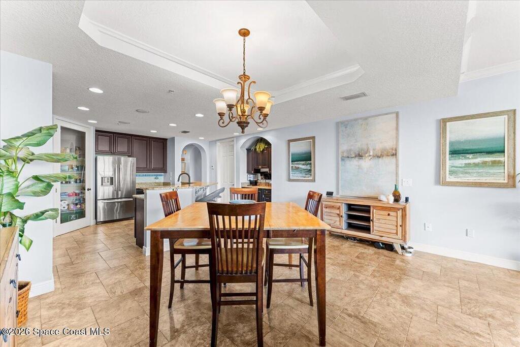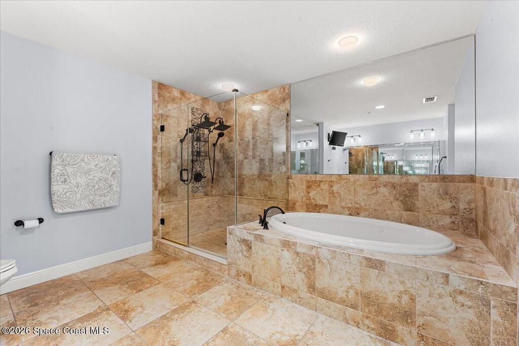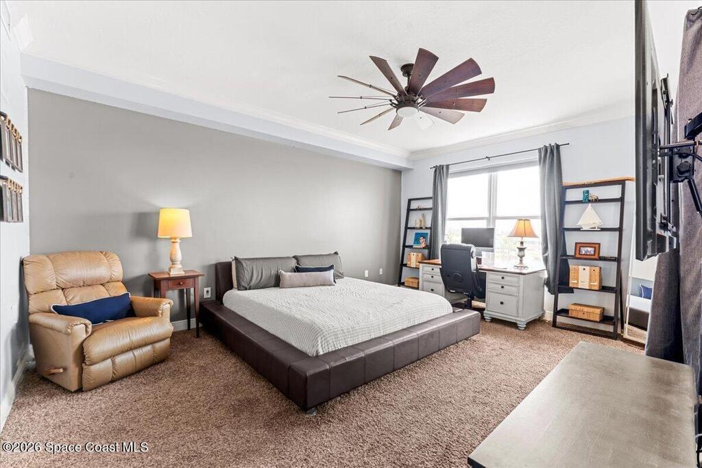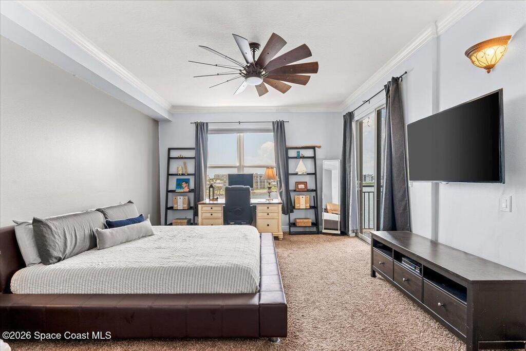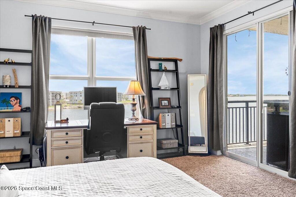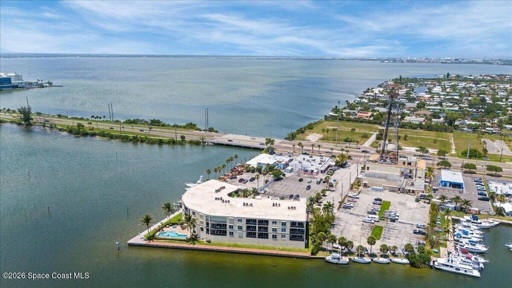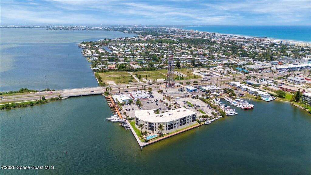 Top floor condo with stunning sunset views over looking the Banana River, right in the heart of Cocoa Beach. Walk to the beach, Ron Jon Surf Shop, and dozens of restaurants. Located in a boutique waterfront community with over 500 feet of shoreline, pool, spa, and gym. The open-concept unit features spacious kitchen, granite countertops, stainless appliances, and ample storage. Travertine-style tile and hurricane-impact windows/doors throughout. A 12 foot slider opens to an oversized balcony, perfect for riverfront entertaining. The large primary suite offers balcony access, his/her closets, and spa like bathroom. Two guest bedrooms, a full guest bath, and indoor laundry add convenience. A rare find - this unit includes private, deeded two car garage. Live the Florida lifestyle!