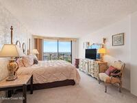 10th floor condo with 270-degree view from wrap around balcony and rooms inside. This is an inviting home with a classic style that makes you feel civilized and refined after a day of romping around at the beach. Large foyer for you to place your sandy things and sit to catch your breath. Fully furnished with comfy beds and everything you need in the kitchen. Laundry machines in unit. 2100 Towers Condo provides beautiful landscaping, a pool, clubhouse, gym, library, and private beach access 24hours a day. There is an inventive system in place for bringing up your groceries and a trash chute to conveniently dispose of waste materials. Banana River Square shopping plaza directly across Atlantic Avenue offers Publix grocery store, salon, barber shop, UPS store, and a variety of restaurants.