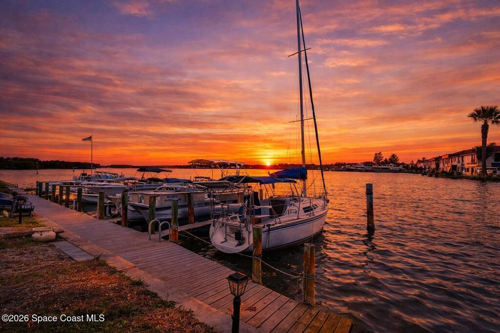 Wake up to breathtaking Banana River views in this beautifully updated condo, perfectly situated in a peaceful Cocoa Beach setting. This light-filled residence features a modern kitchen with quartz countertops, stainless-steel appliances, and stylish finishes throughout. The updated bathrooms include a Bluetooth-enabled mirror in the primary bath, while new flooring and fresh interior paint create a clean, move-in-ready feel. The flexible layout offers two comfortable bedrooms plus a spacious bonus room ideal for a home office, fitness area, or additional living space. The enclosed lanai with impact glass provides a serene spot to relax, entertain, or watch spectacular rocket launches over the river. Residents enjoy access to a community pool and dock, with potential boat slip availability, all just minutes from the Atlantic Ocean, local dining, shopping, and parks. Experience the perfect blend of modern updates, coastal lifestyle, and waterfront tranquility.HVAC-2024, Water Heater-2025