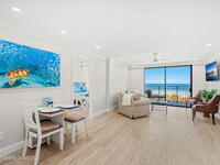 Indulge yourself in oceanfront living in this newly renovated 2-bedroom, 2-bath direct oceanfront residence. Perfectly positioned to capture unobstructed views of the Atlantic, this exceptional unit offers a front-row seat to breathtaking sunrises and the soothing rhythm of the waves from your private balcony. No detail has been overlooked. The interiors showcase a sophisticated coastal-modern design with high-end finishes throughout, tile flooring, recessed lighting. The chef's kitchen is a showpiece, featuring premium stainless-steel appliances, custom cabinetry, and an elegant backsplash that blends beauty with functionality. The primary suite is a serene retreat overlooking the ocean, complete with a en-suite bath boasting a frameless glass walk-in shower, upscale fixtures and refined finishes. The guest suite offers its own beautifully appointed bath, ensuring comfort and privacy for family and guests. This is more than a rental, it is beachfront living. Schedule a tour.