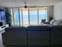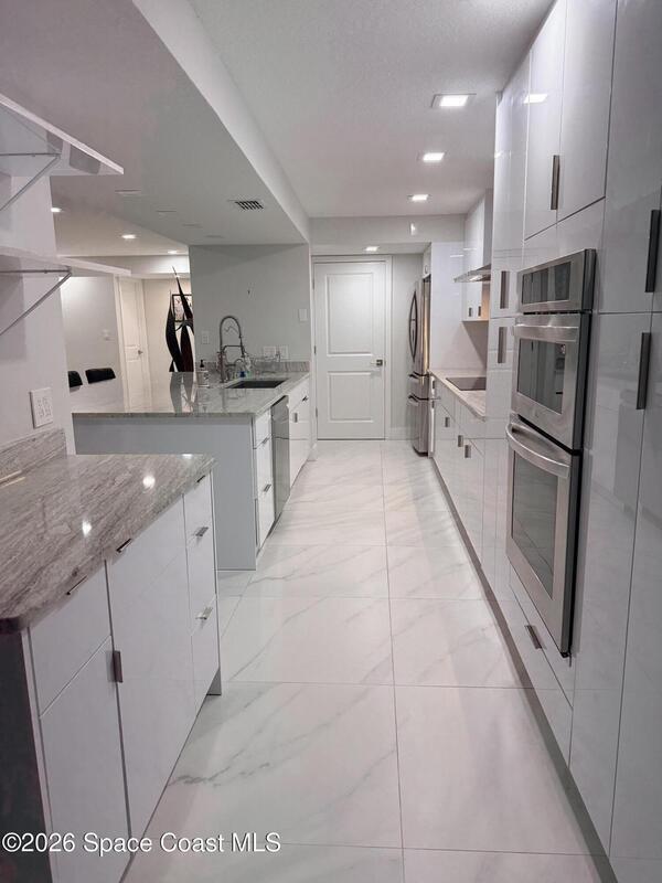 Don't miss this iconic Constellation Condo in Cocoa Beach! This stunning furnished home offers a rare combination of expansive ocean views and breathtaking river vistas--perfect for enjoying both sunrise over the water and spectacular sunset skies each evening. Fully renovated with a sleek, modern design, this home features an impeccable kitchen with crisp white cabinetry, gorgeous granite countertops, stainless steel appliances, an oversized island, and a custom marble backsplash. The open-concept floor plan maximizes natural light and showcases uninterrupted ocean views, complemented by elegant marble tile flooring throughout. The oceanfront primary suite is a private retreat, complete with balcony access and panoramic water views. The spa-inspired en-suite bath boasts a large walk-in shower, whirlpool soaking tub, and double-sink vanity with designer finishes. Residents enjoy private beach access, heated pool, sauna and secure lobby. This is coastal Florida living at its finest!