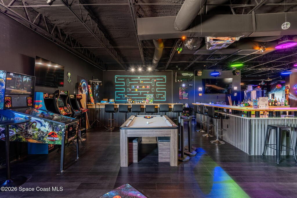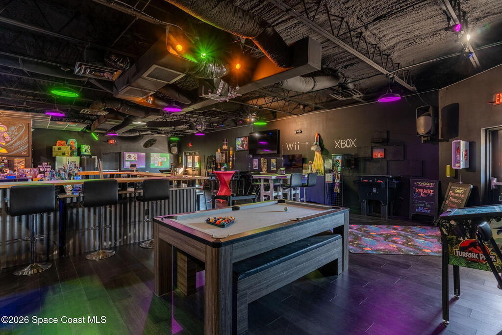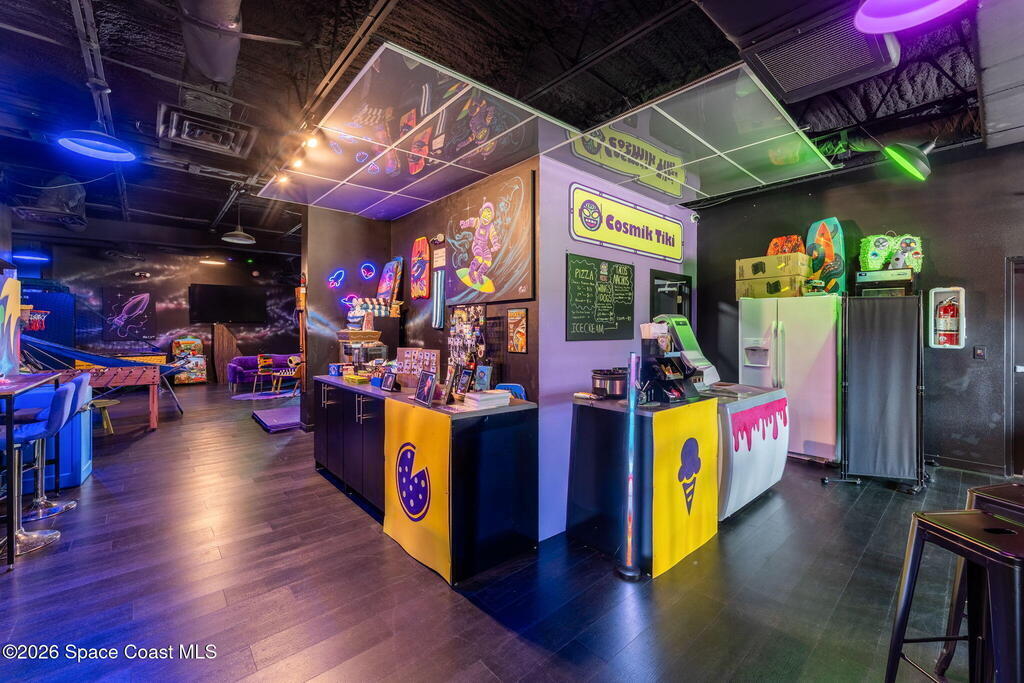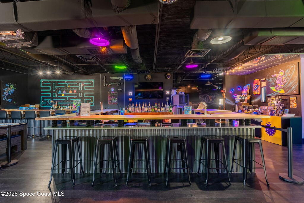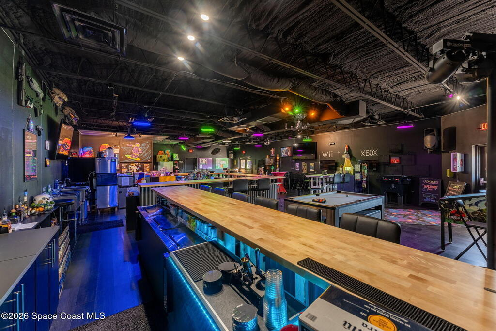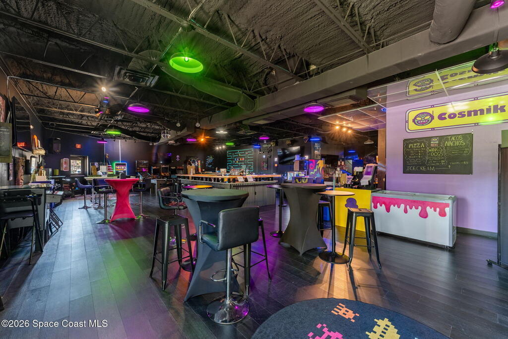 Cocoa Beach Turn-Key Hospitality Destination -- Restaurant, Arcade, Event Venue, Public Pool & Income-Producing Parking. Located along one of the most active corridors in world-famous Cocoa Beach, this property offers a fully operational hospitality and entertainment venue that has been rebuilt beyond the studs and placed into service-ready condition. The building contains a turnkey restaurant and arcade environment supported by a commercial kitchen and an indoor bar. The property includes two contemporary restrooms and three commercial family shower facilities serving guests, members, and event patrons. A commercial-grade swimming pool designed to hospitality standards forms a primary attraction of the site. It includes water features, a sun shelf, accessible entry accommodations, and a surrounding pool deck and lounge area. The pool supports memberships, day-use access, and private events, generating consistent visitor traffic to the restaurant and facility. Outdoor areas include