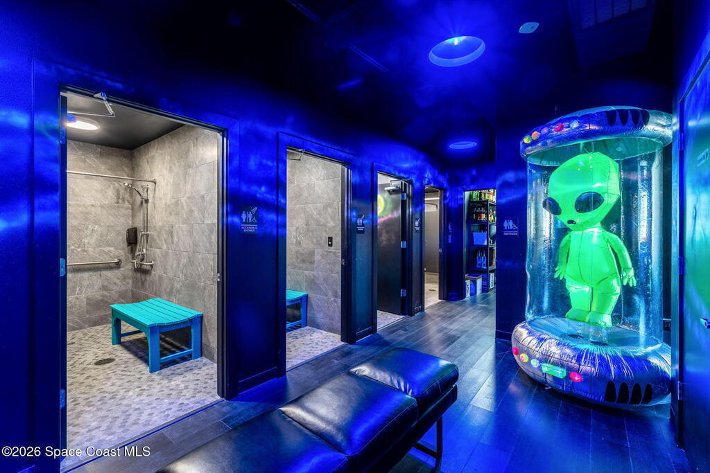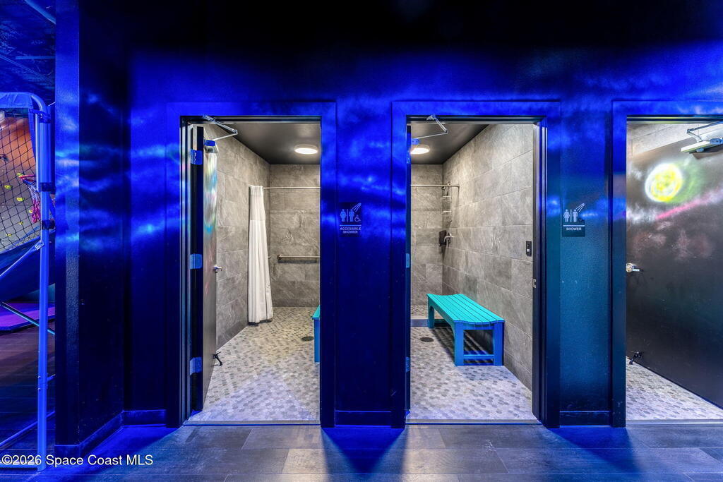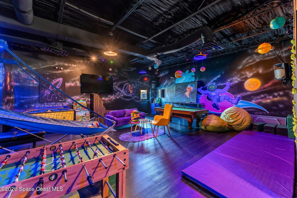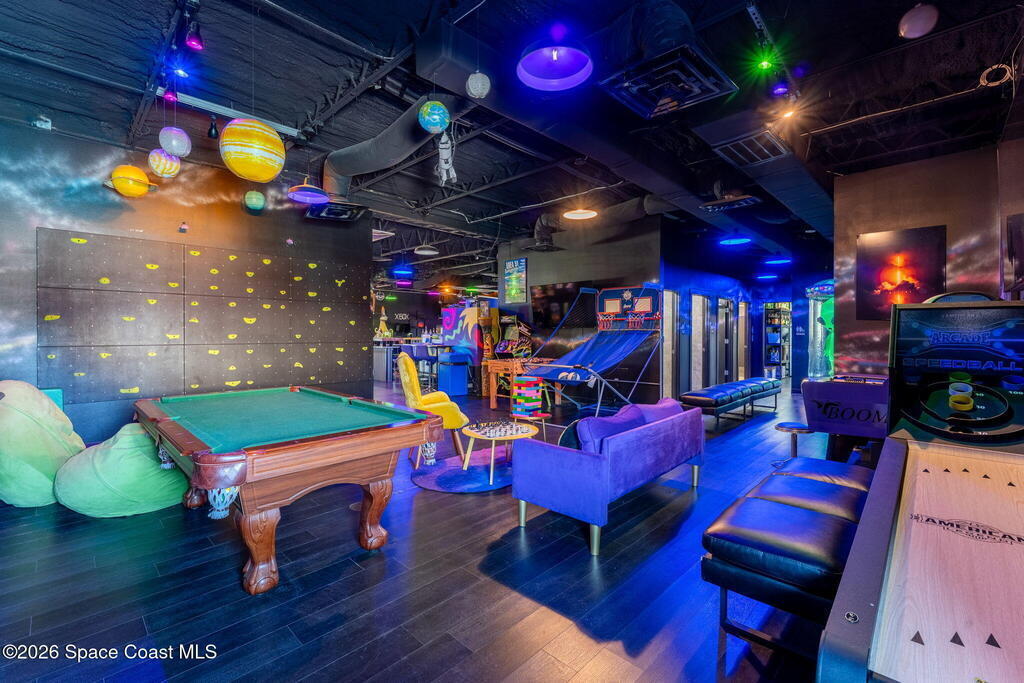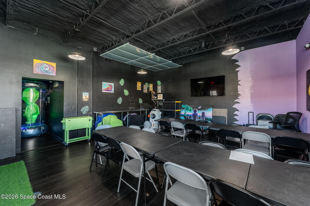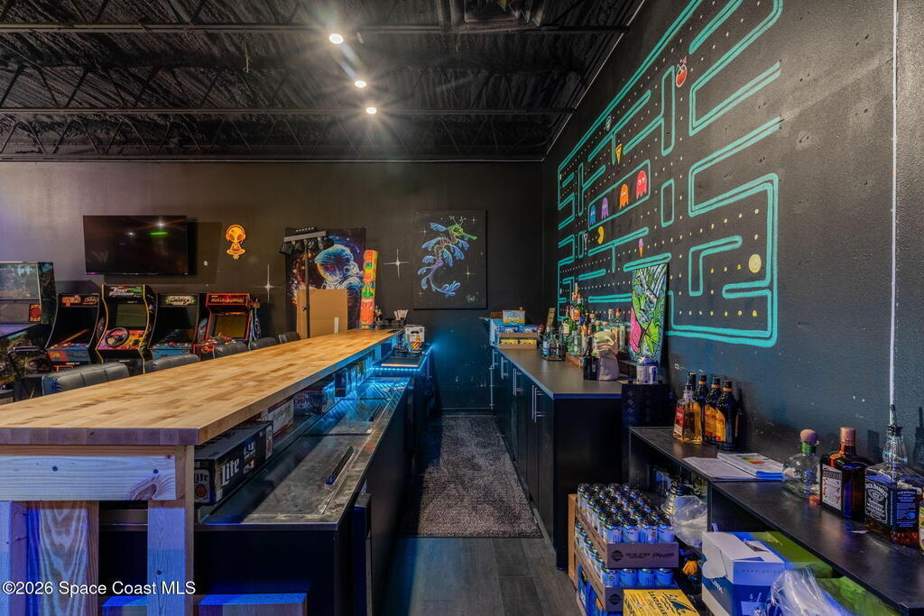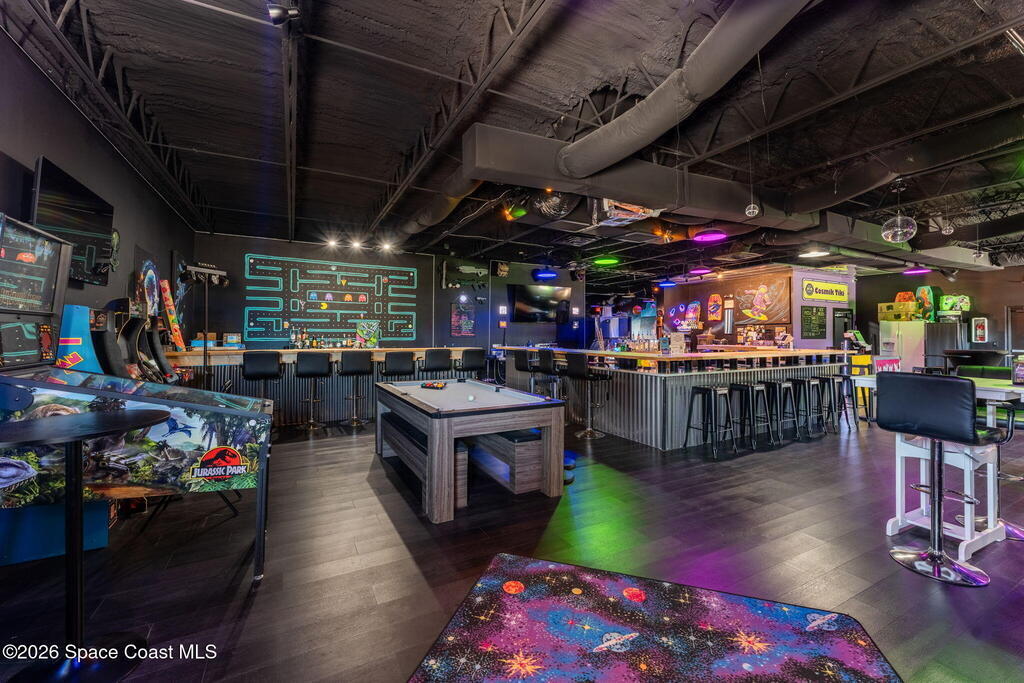 Cocoa Beach Turn-Key Hospitality Destination -- Restaurant, Arcade, Event Venue, Public Pool & Income-Producing Parking. Located along one of the most active corridors in world-famous Cocoa Beach, this property offers a fully operational hospitality and entertainment venue that has been rebuilt beyond the studs and placed into service-ready condition. The building contains a turnkey restaurant and arcade environment supported by a commercial kitchen and an indoor bar. The property includes two contemporary restrooms and three commercial family shower facilities serving guests, members, and event patrons. A commercial-grade swimming pool designed to hospitality standards forms a primary attraction of the site. It includes water features, a sun shelf, accessible entry accommodations, and a surrounding pool deck and lounge area. The pool supports memberships, day-use access, and private events, generating consistent visitor traffic to the restaurant and facility. Outdoor areas include