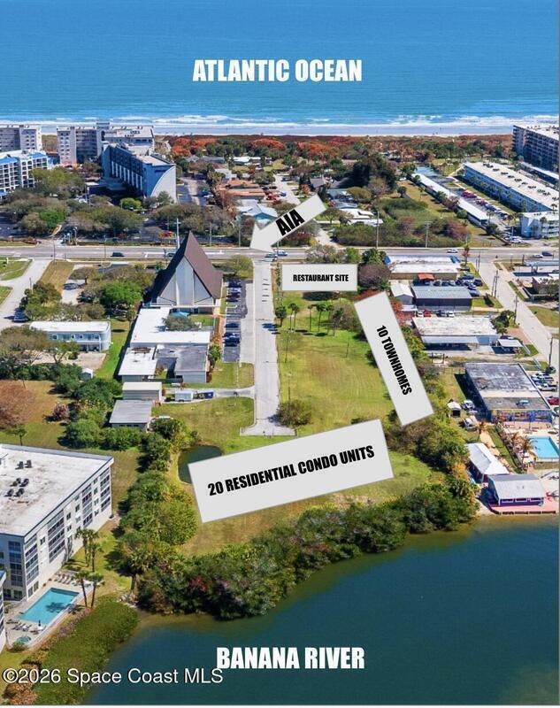 Fully entitled 3.2-acre Banana Riverfront development opportunity--designed and approved for a 20-unit luxury condominium building, 10 townhomes, and a +/-4, 650 sq. ft. restaurant site located on the East side of the property on A1A for high drive by customer visibility. Plans include residential amenities that elevate the lifestyle experience, including a resort-style community pool, direct Banana River frontage with dock access, and a dedicated fitness center--all set against sweeping water views and endless sunset backdrops.