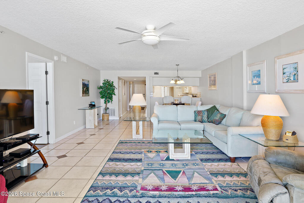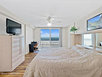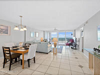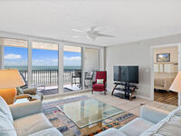 Welcome to Majestic Seas, where breathtaking OCEAN VIEWS are part of your daily routine. This FULLY-FURNISHED 2-bed, 2-bath coastal retreat on the 7th floor features an open living and dining layout with light tile flooring, floor-to-ceiling impact sliders with storm shutters, and a seamless flow to your expansive covered balcony patio, where you can relax and soak in ocean breezes. The eat-in kitchen features tile countertops, a decorative backsplash, breakfast bar, and stainless dishwasher. The primary suite is a true sanctuary with direct balcony access, wood-look laminate flooring, and a spacious en suite bath with jetted soaking tub and separate shower. A charming second bedroom with new laminate floors offers flexibility for guests. The welcoming entry foyer offers ocean views as you enter the home. An in-unit laundry room with built-in storage and assigned garage space adds everyday convenience. Beach life awaits!