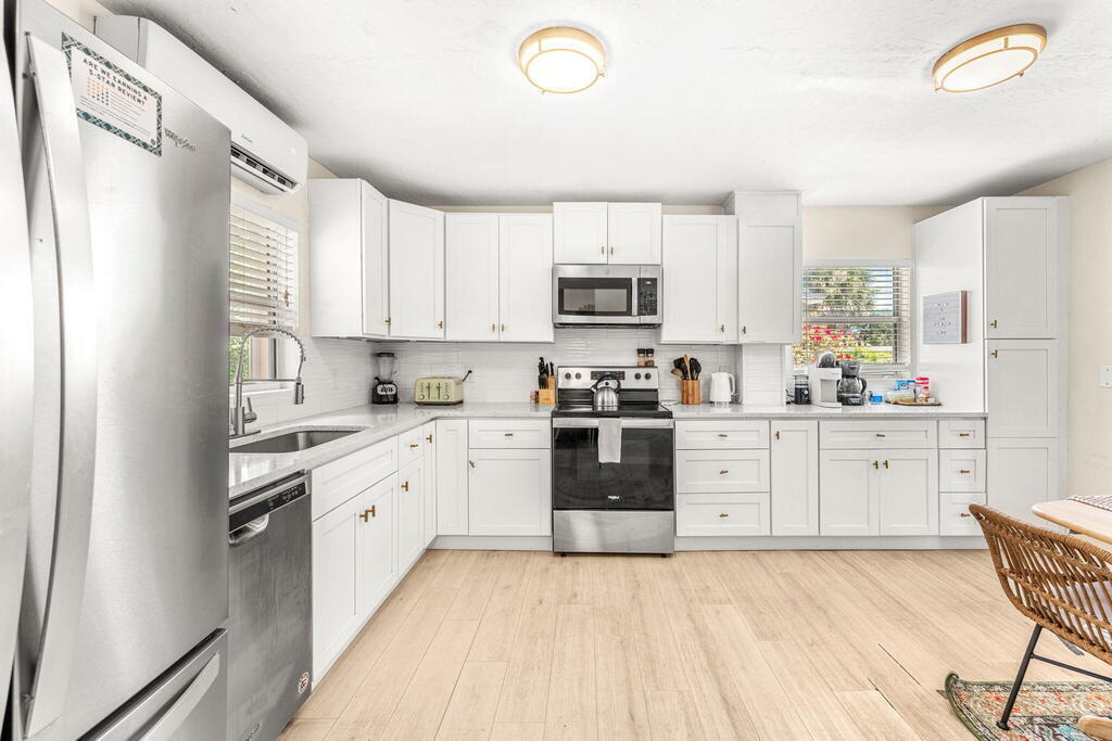 Welcome to your Cocoa Beach oasis, ideally located just one block from downtown and one block from the ocean. Situated near world famous surf, local dining, boutique shopping, and the coastal lifestyle that draws buyers to this iconic beach town, this unique property offers exceptional flexibility and income potential.The main residence features 3 bedrooms and 2 bathrooms, while the detached rear 1 bedroom, 1 bathroom mother in law suite includes its own private laundry, making it ideal for guests, multi generational living, or rental income. Tropical landscaping surrounds a private communal courtyard that creates a true island retreat feel, with parking for 4+ vehicles adding rare convenience this close to the beach.Whether you are searching for a primary residence, vacation home, or investment opportunity in Cocoa Beach, this versatile property delivers.