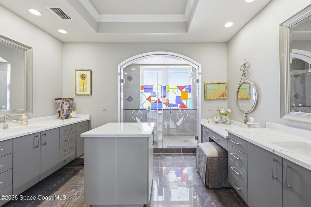 The Pinnacle of Riomar: Full-Floor Oceanfront PenthouseExperience unmatched privacy with a secure elevator directly accessing your private foyer. This full-floor, 3, 009 sq ft residence offers 360 views--from Atlantic sunrises to Banana River sunsets--making it a rare, fully customized top-floor opportunity.This 3-bedroom, 3.5-bath home features 10-foot ceilings, hardwood floors, and expansive living areas with a wine bar and two wine coolers. The chef's kitchen includes: two Sub-Zero refrigerators, Thermador double ovens, Samsung cooktop, and Fisher & Paykel double drawer dishwasher.The floor plan is designed for flow and privacy: open kitchen and dining area maximizes light and water views and has powder room. Each bedroom has an view, en-suite bath, plus custom closets.Enjoy a private oceanfront balcony, motorized hurricane shutters, private garage + extra parking, and new HVAC/water systems. Boutique community with pool, security, and all-inclusive fees.