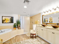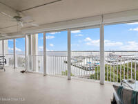 This stunning corner condominium with expansive wraparound balcony offers expansive views of the intracoastal waterway, captivating sunrises, and thrilling rocket launches from your 5th-floor corner unit in the highly sought-after Whitley Bay West. This beautifully updated condo features luxury vinyl plank flooring throughout, fresh paint, and upgrades, including new stainless steel LG dual wall oven with convection/microwave, new refrigerator, kitchen wine cooler, new LG stackable washer/dryer with steam feature, new granite vanities and upgraded toilets (including bidet), upgraded ceiling fans throughout including balcony, new AC units, fresh paint, new Bahama shutters & tastefully upgraded lighting fixtures. Enjoy the ultimate in waterfront living while being next to vibrant Cocoa Village, offering theaters, restaurants, coffee shops, and year-round events. Enjoy access to luxury community amenities, including a pool, jacuzzi, fitness center and club room.