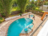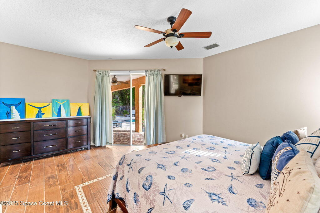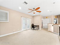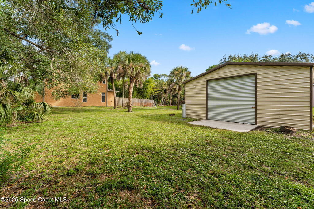 Welcome to your own Cocoa sanctuary-a ONE-ACRE blend of style, space, and pure Florida freedom! This isn't just a home, it's a lifestyle. Featuring 5 bedrooms (including 2 master suites), 3 full baths, and 2 half baths, this custom estate is built to impress. Inside, vaulted ceilings and an open layout with tile and carpet flooring set the tone for effortless living. The entertainer's dream kitchen shines with granite countertops, breakfast bar, wine cooler, ice maker, and bar fridge. Step outside to your private inground pool, framed by a wood fence for total privacy. The 25x35 workshop with 10' ceilings, 100-amp electric, and A/C is the ultimate creative retreat. Next level perks include central vac, smart thermostat, smart doorbell, surround sound, and manual awnings. Watch rockets light up the sky and live minutes from I-95, beaches, and boundless adventure!