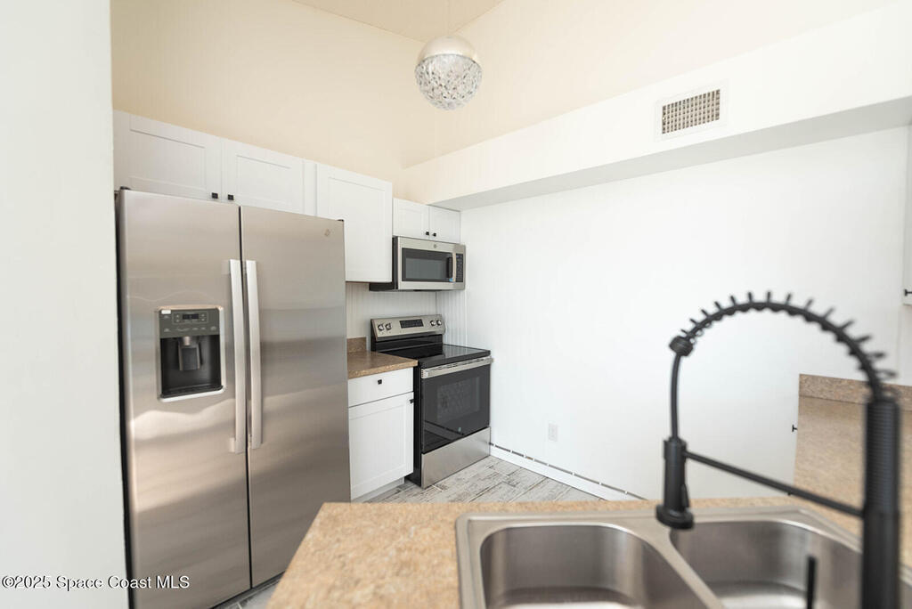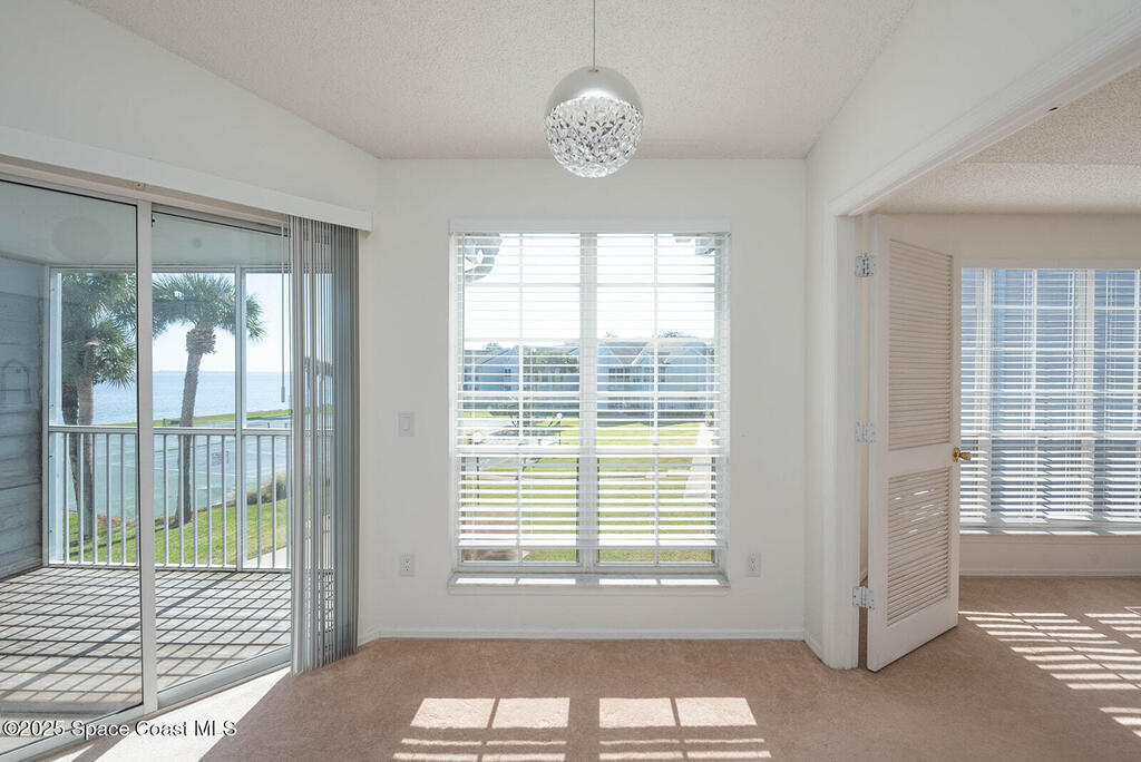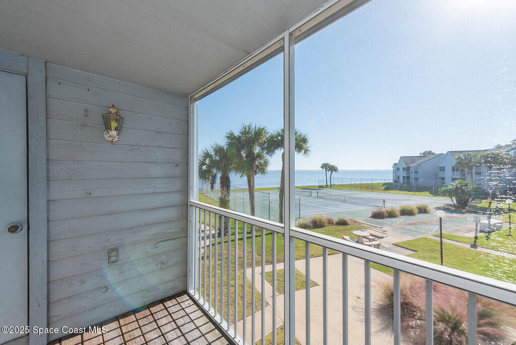 All assessments up to date! Lowest HOA around includes cable/internet! This 3/2 condo in Sunrise Landing offers panoramic views of the Indian River, filling the kitchen and dining room with natural light. Let porpoises and manatees entertain you right outside your window. Centrally located on the Space Coast, it combines comfort with effortless convenience. Sunlit living spaces feature tile in the kitchen & baths, with soft carpeting in the living areas & bedrooms. Recent upgrades include new kitchen appliances, bathroom vanities in each bedroom, fresh interior paint, modern fixtures, a/c, water heater & stacked washer/dryer. Sunrise Landing offers amenities including 2 pools (one heated), 2 fishing piers, 2 saunas, 2 hot tubs, 2 clubhouses, a spa, BBQ area, tennis & shuffleboard courts, 2 fishing piers & a vehicle wash zone. Schedule your showing today!