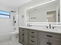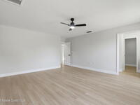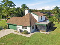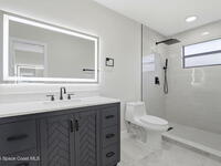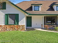 This fully renovated 4 bedroom, 3 bathroom home is located in a sought-after Cocoa neighborhood and sits on a spacious 1.05 acre lot. The property features beautiful curb appeal, manicured landscaping, a 2-car attached garage, and a detached garage perfect for extra parking, storage, or a workshop. Inside, you'll find brand new luxury vinyl flooring, modern light fixtures, and an open layout. The living room includes a stone-lined fireplace, and the updated kitchen offers stainless steel appliances and quartz countertops with a sliding glass door leading to the screened-in patio. The bedrooms have ceiling fans, large windows, and plenty of natural light. The primary bathroom features a renovated tile-lined shower and updated vanity. A bonus space upstairs is ideal for an office or extra living area. With no HOA and a large backyard perfect for gatherings, this home offers both space and convenience. Easy access to beaches, Port Canaveral, the Space Center, and Orlando nearby.