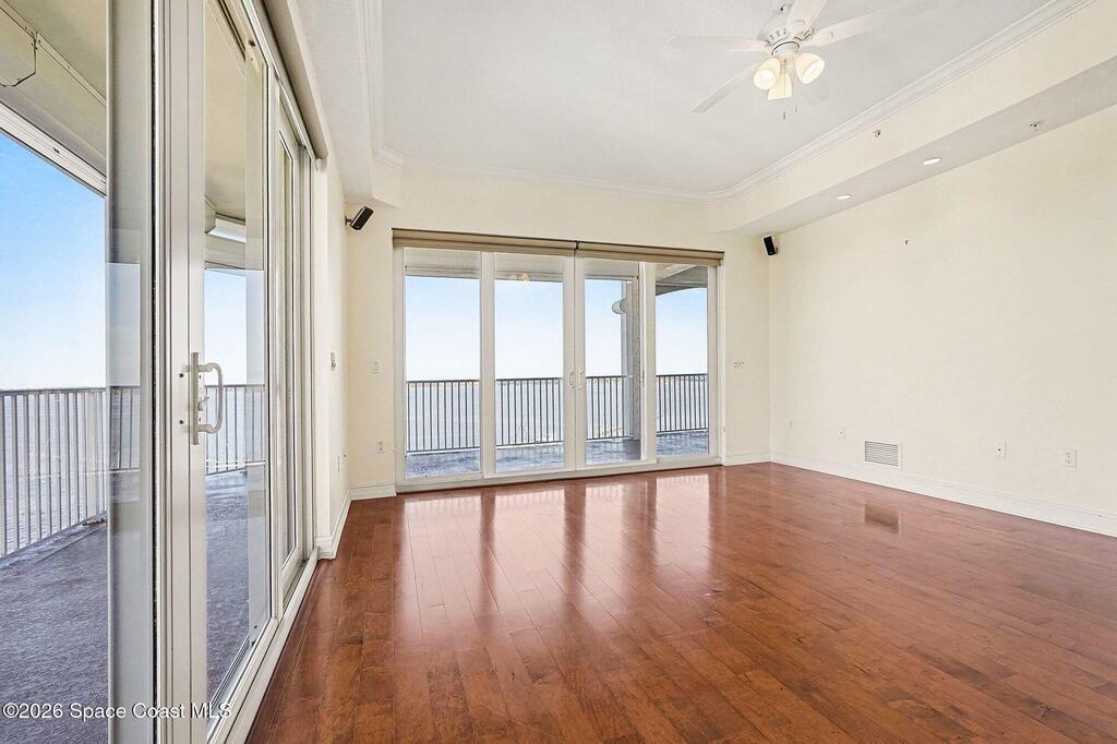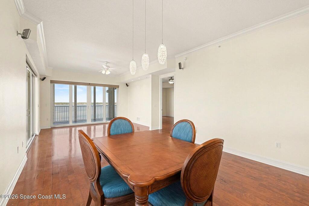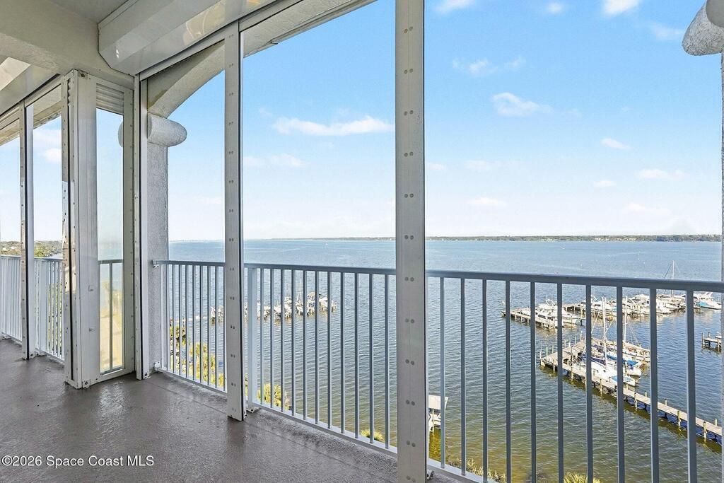 Rare opportunity to own a stunning corner penthouse condominium, one of the largest units offered in refined coastal luxury. Soaring 10' ceilings and glass doors fill the residence with natural light, while a wraparound 10th-floor balcony showcases breathtaking 180-degree views of sunrises and rocket launches over the Indian River. This thoughtfully designed home features four bedrooms, 3 baths, two private ensuites separate from the primary suite and main living areas, providing exceptional privacy and flexibility. The elegant kitchen is appointed with high-end wood cabinetry, granite countertops, walk-in-pantry, & island ideal for entertaining. Impact-rated windows and electric shutters provide full storm protection and peace of mind. An enclosed private 11/2-car garage offers ample storage. Just steps from charming Cocoa Village enjoy boutique shopping, dining, riverfront parks, and sidewalks, with convenient access to Pt Canaveral, pristine beaches, 45min. to Orlando Int'l airport