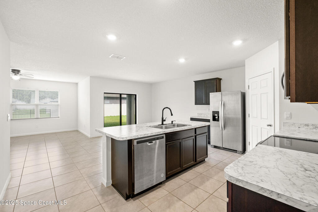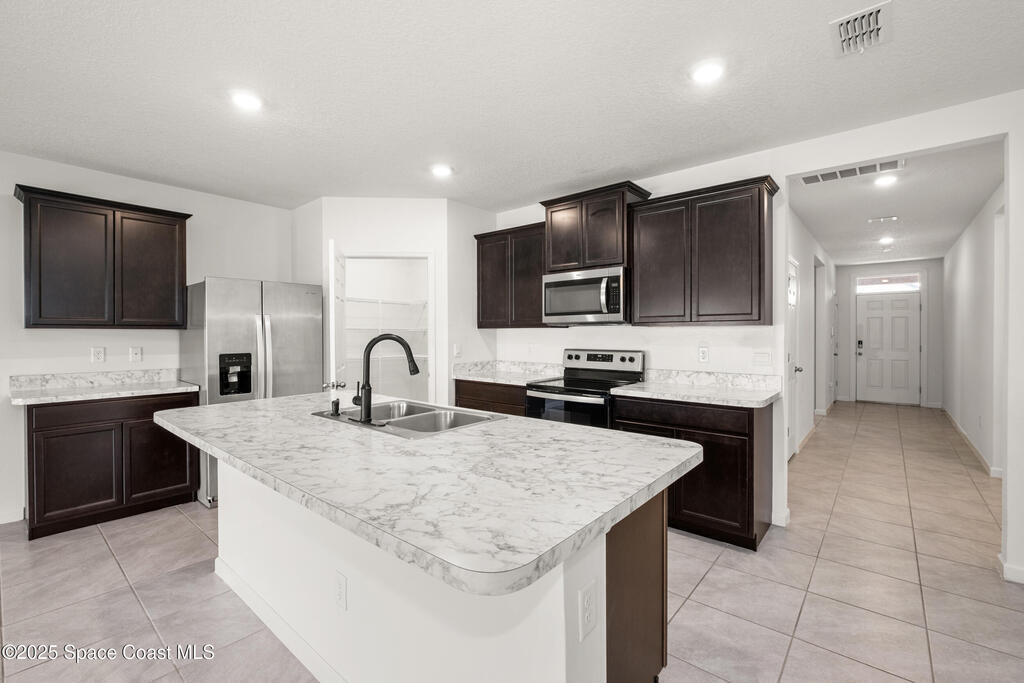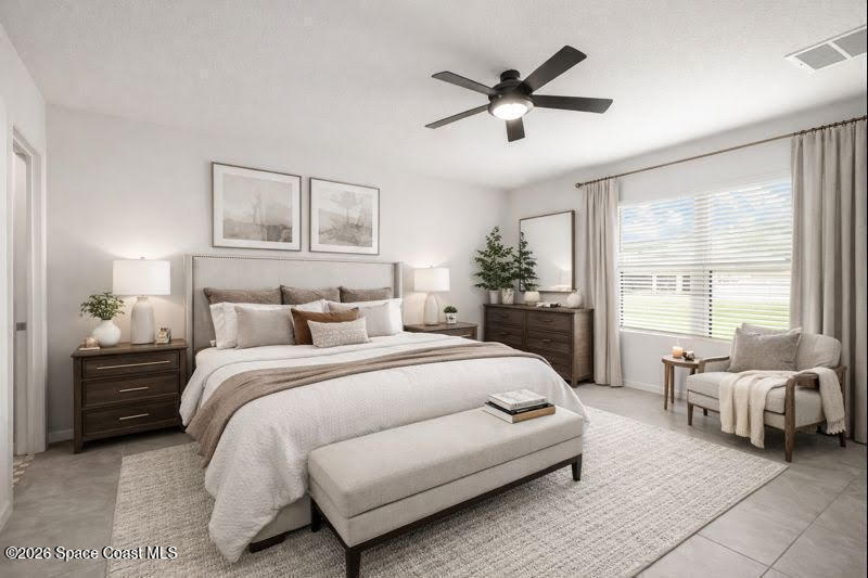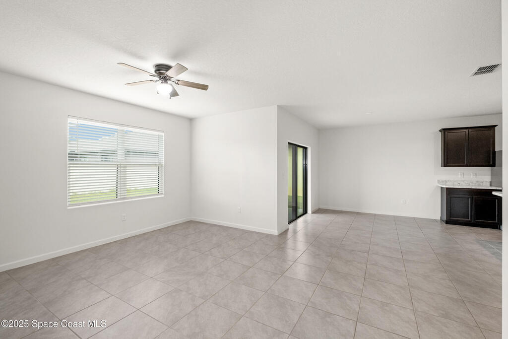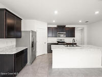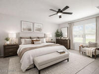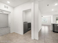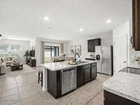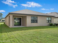 Spacious Cali model floor plan includes large kitchen with island open to living area, perfect for entertaining. Large and luxurious tiled primary suite is on separate side of house from guest bedrooms with indoor laundry room situated in the middle of the home for easy access to everyone. Slider to back porch is great for grilling and enjoying morning coffee outside under cover. Includes neighborhood pool, playground, jogging path and dock. Easy access to I95, Space Center and Orlando.